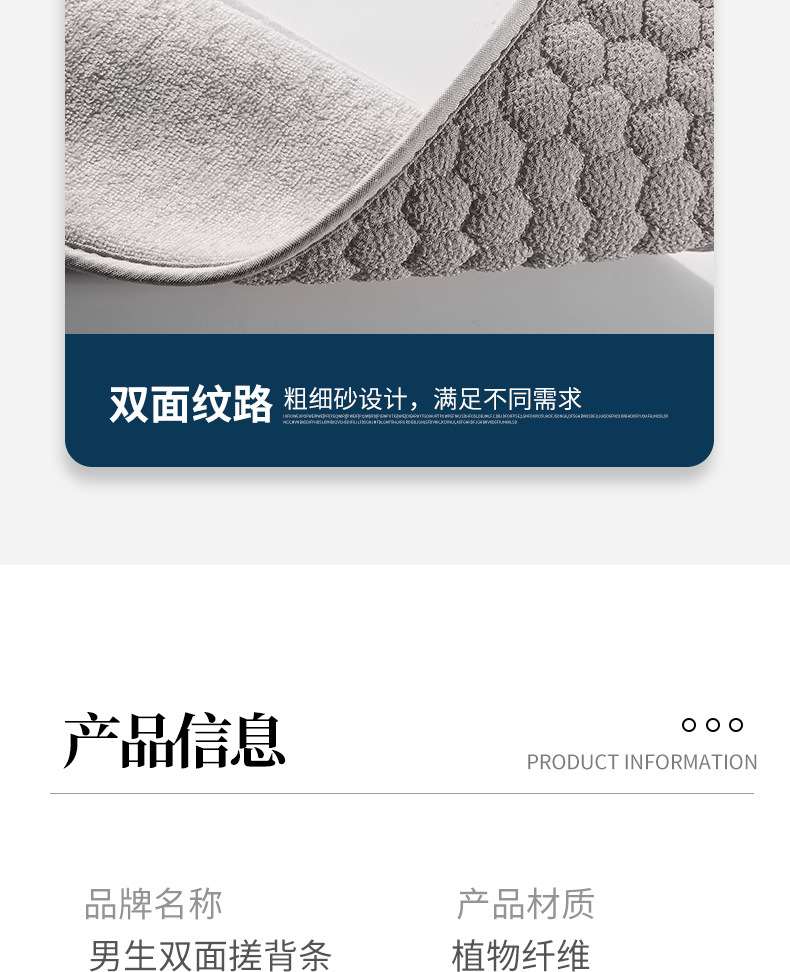 男性用背中用ロング両面バスタオル、泥をこする家庭用粗い砂と骨