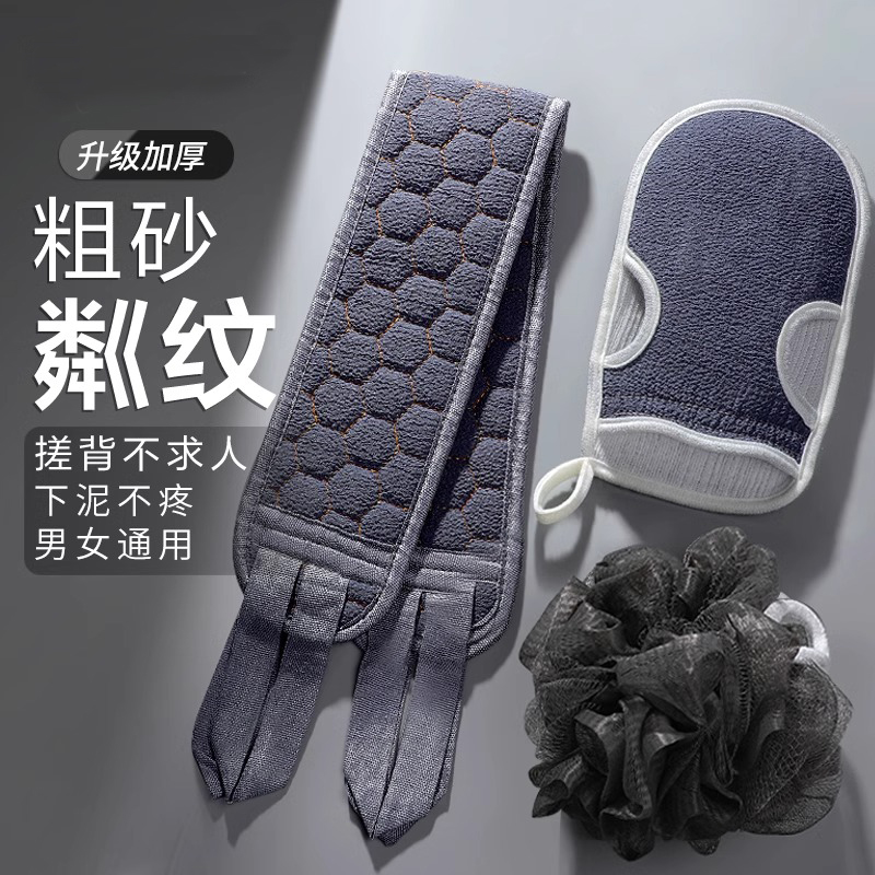 搓澡巾强力搓泥用后背东北高质量长条细砂澡堂灰三件套双面拉背条