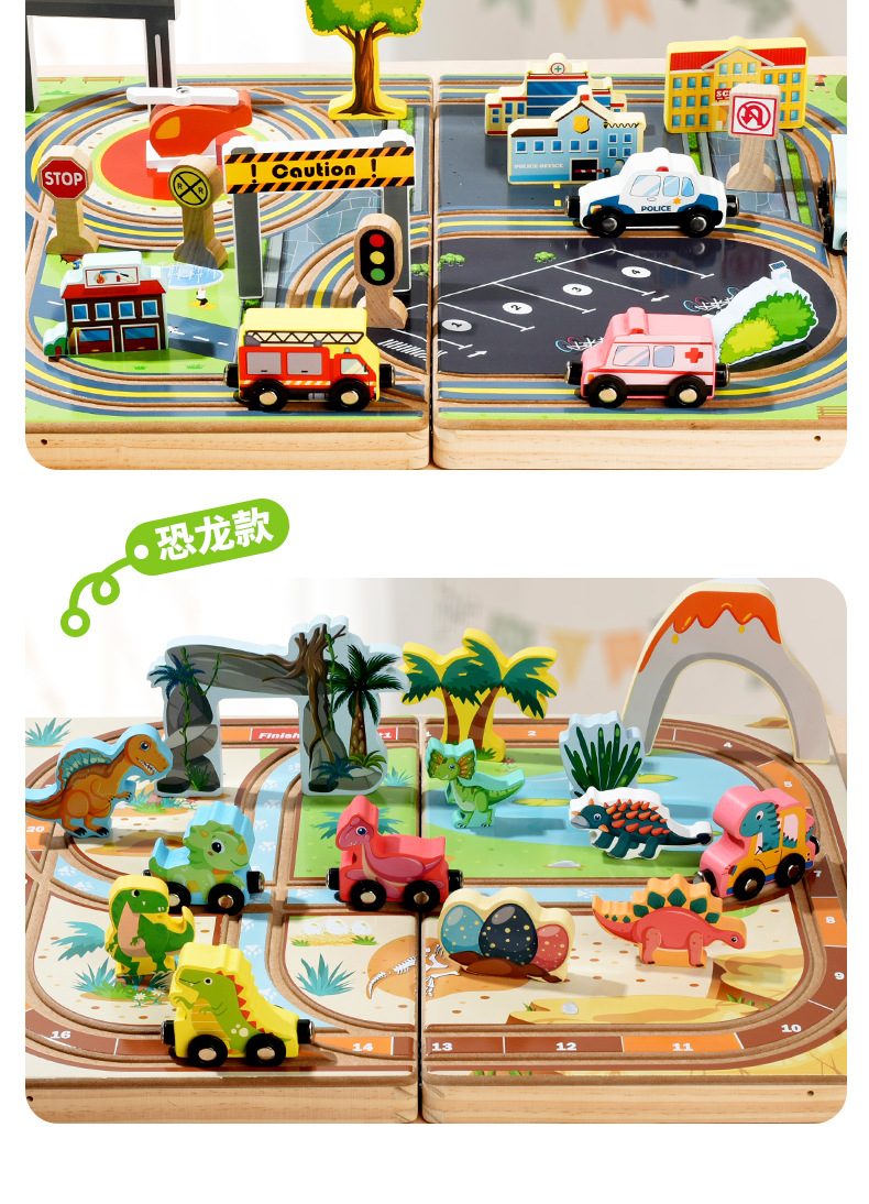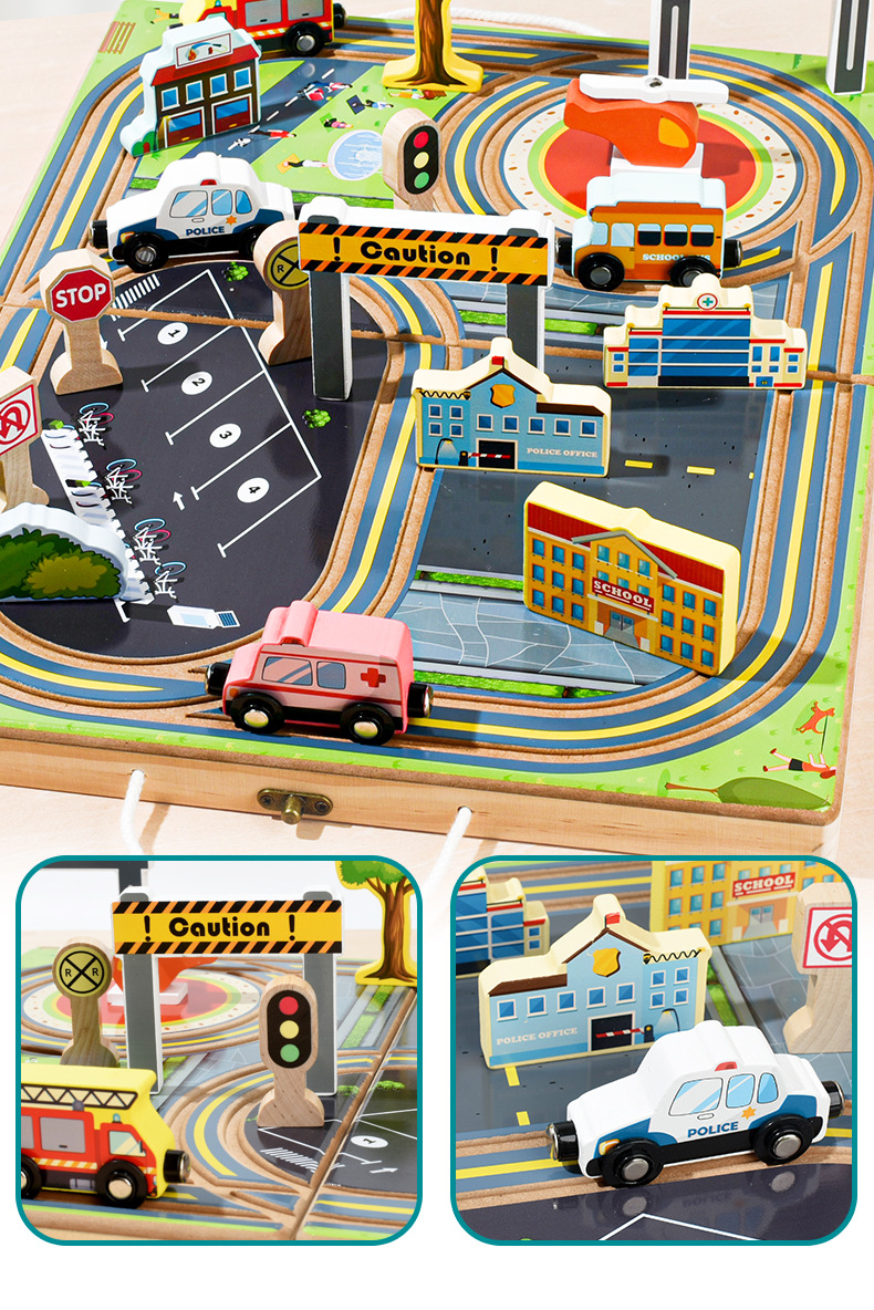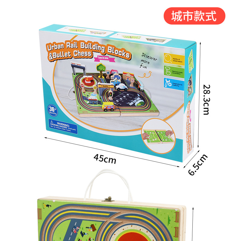 クロスボーダー108件の道路列車軌道セット木製児童知育DIY組立軌道玩具車