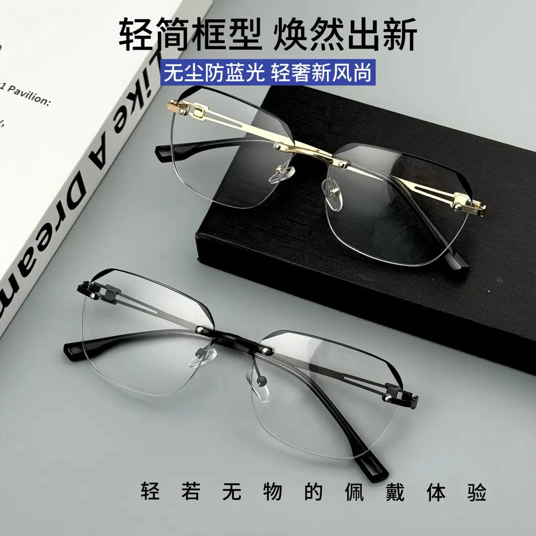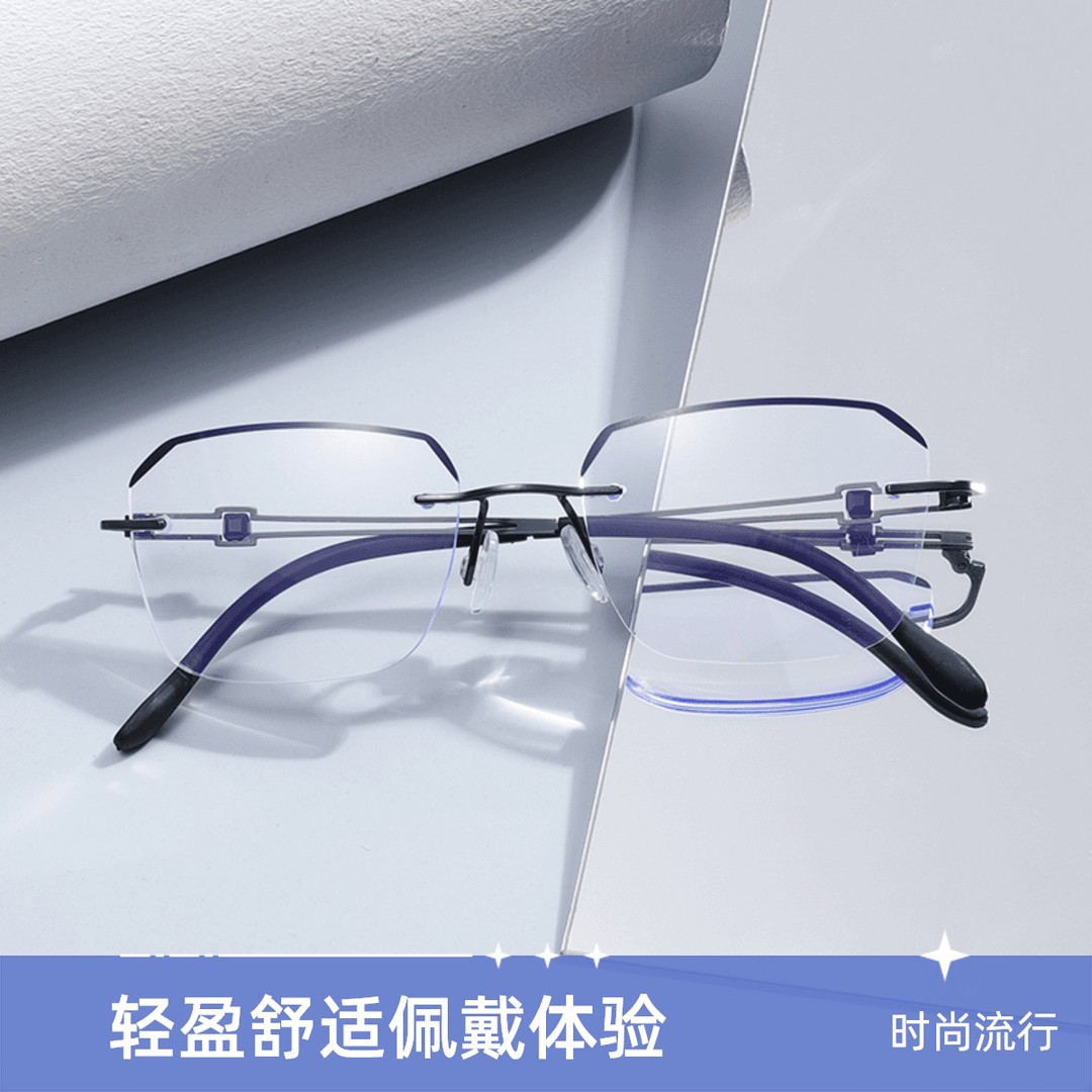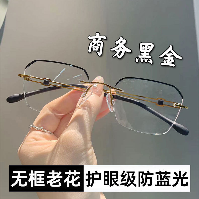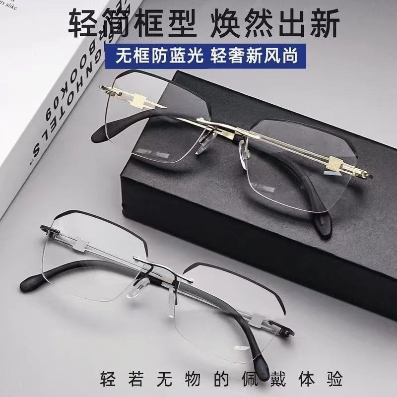 新型フレームレス超軽量ブルーライト老眼鏡中高年読書眼鏡塗装カット金属変色眼鏡