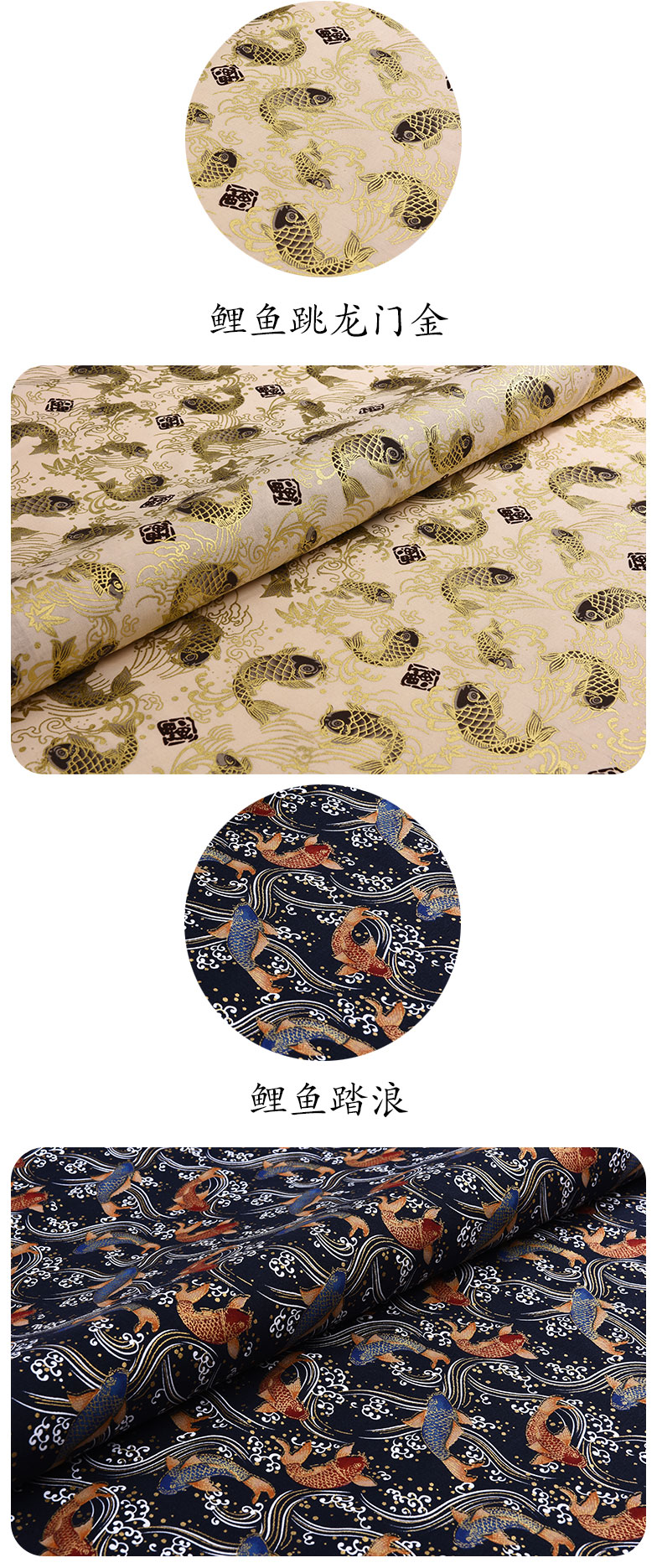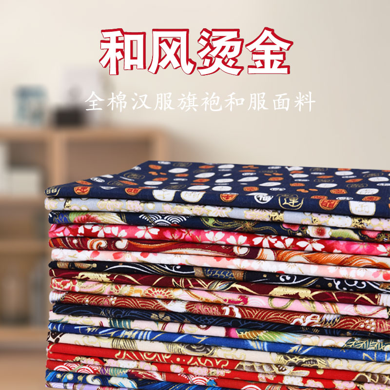 和式和風箔押し綿布プリント綿麻花布着物漢服チャイナドレス生地布頭処理