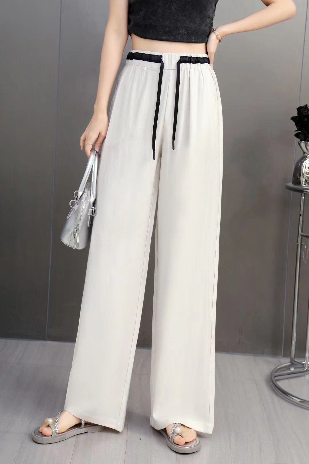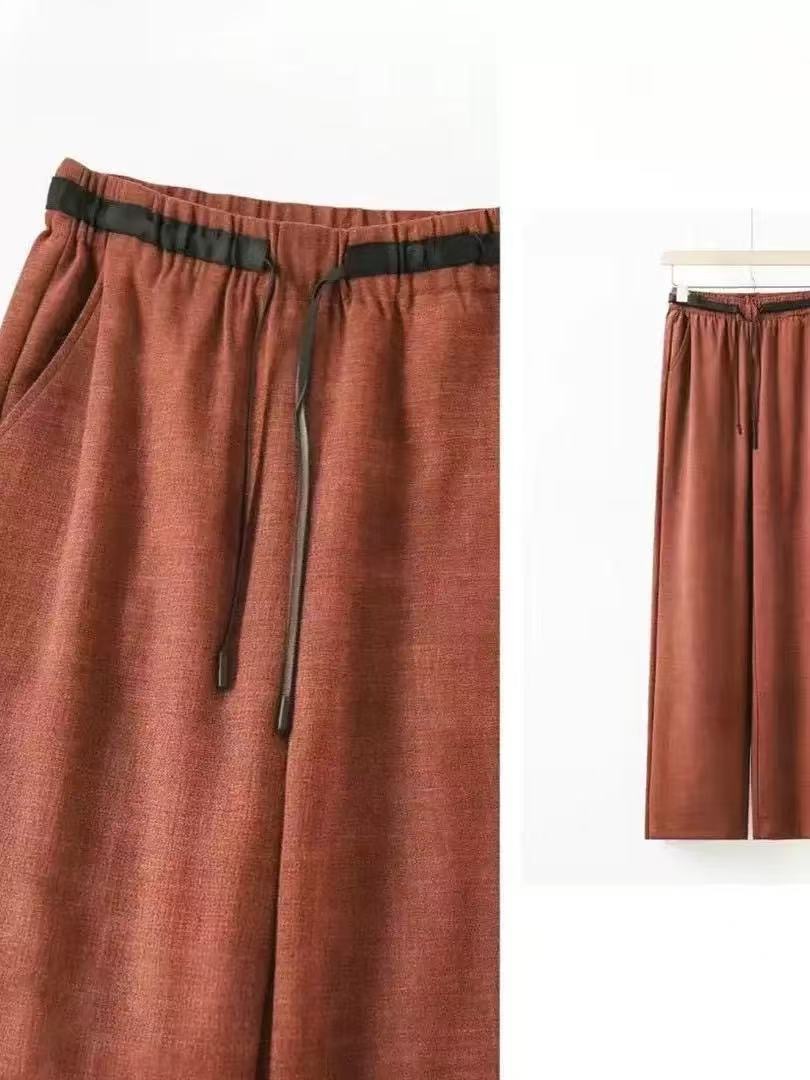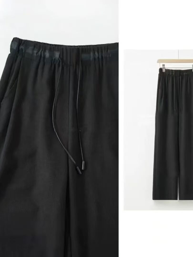 腰を緩めている天糸亜麻の狭い版のワイドパンツの女性の夏の薄いタイプの2025新型の垂れ下がった感じの氷糸の綿の麻のストレートのズボン