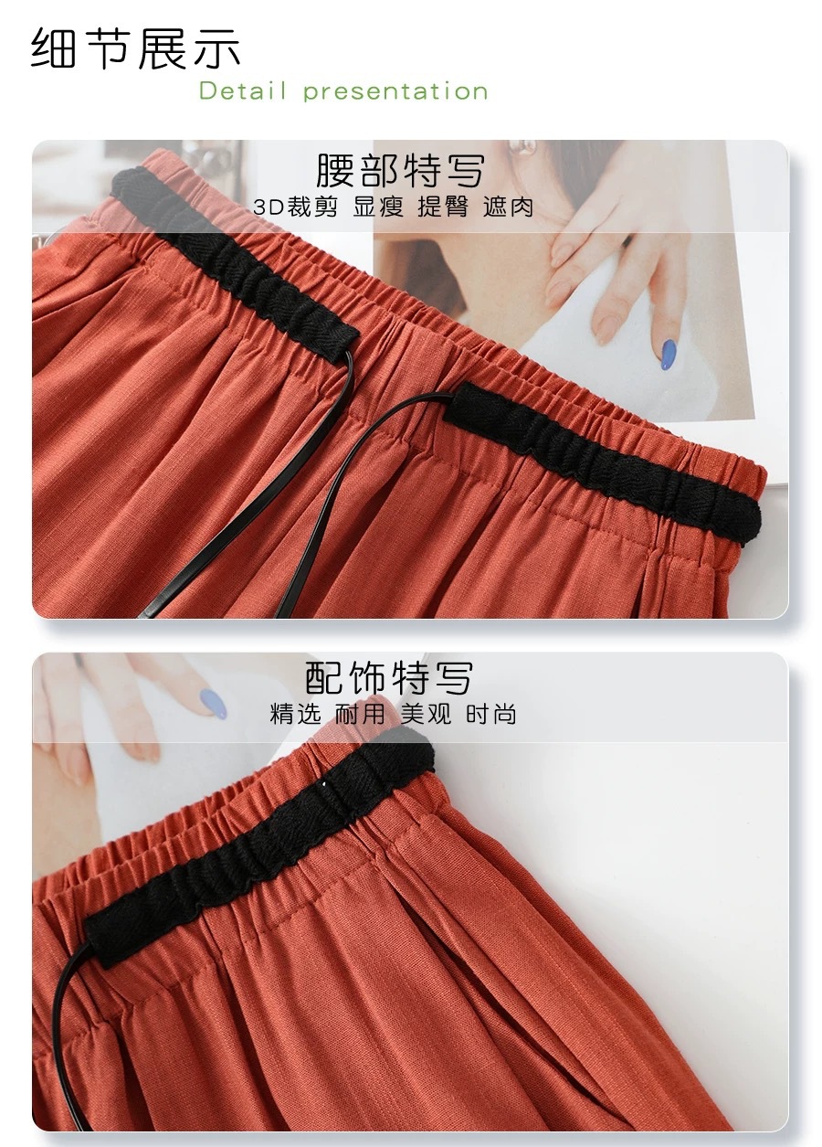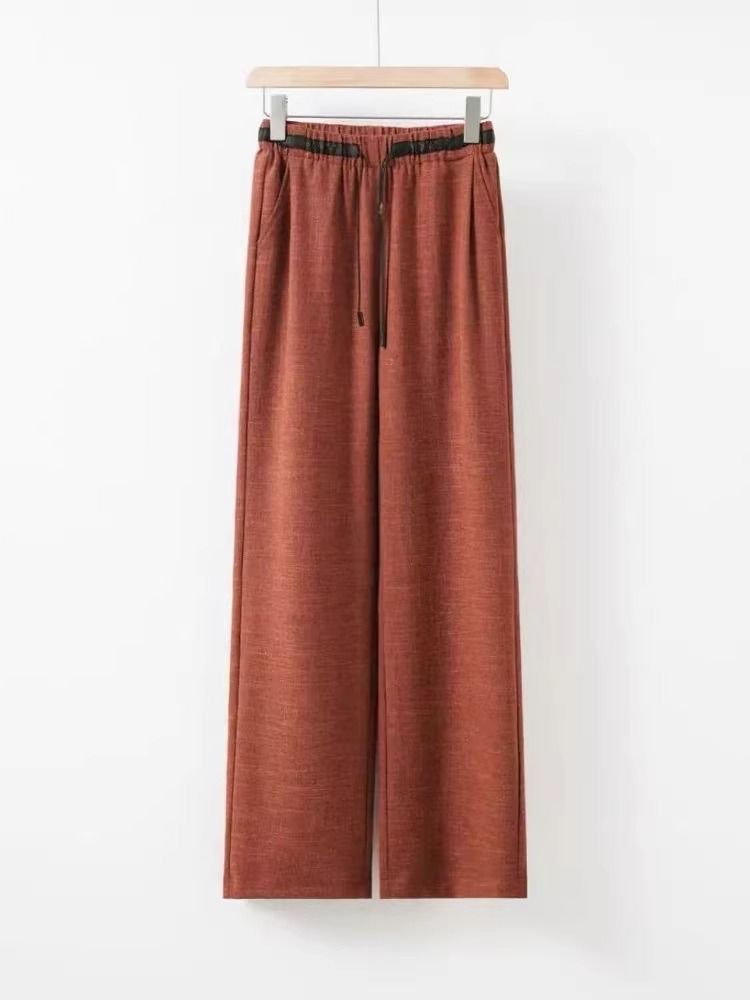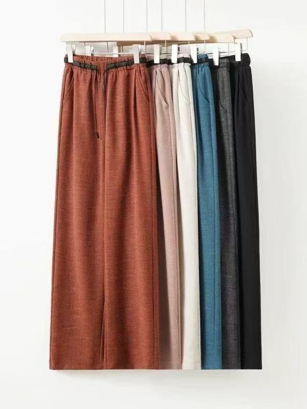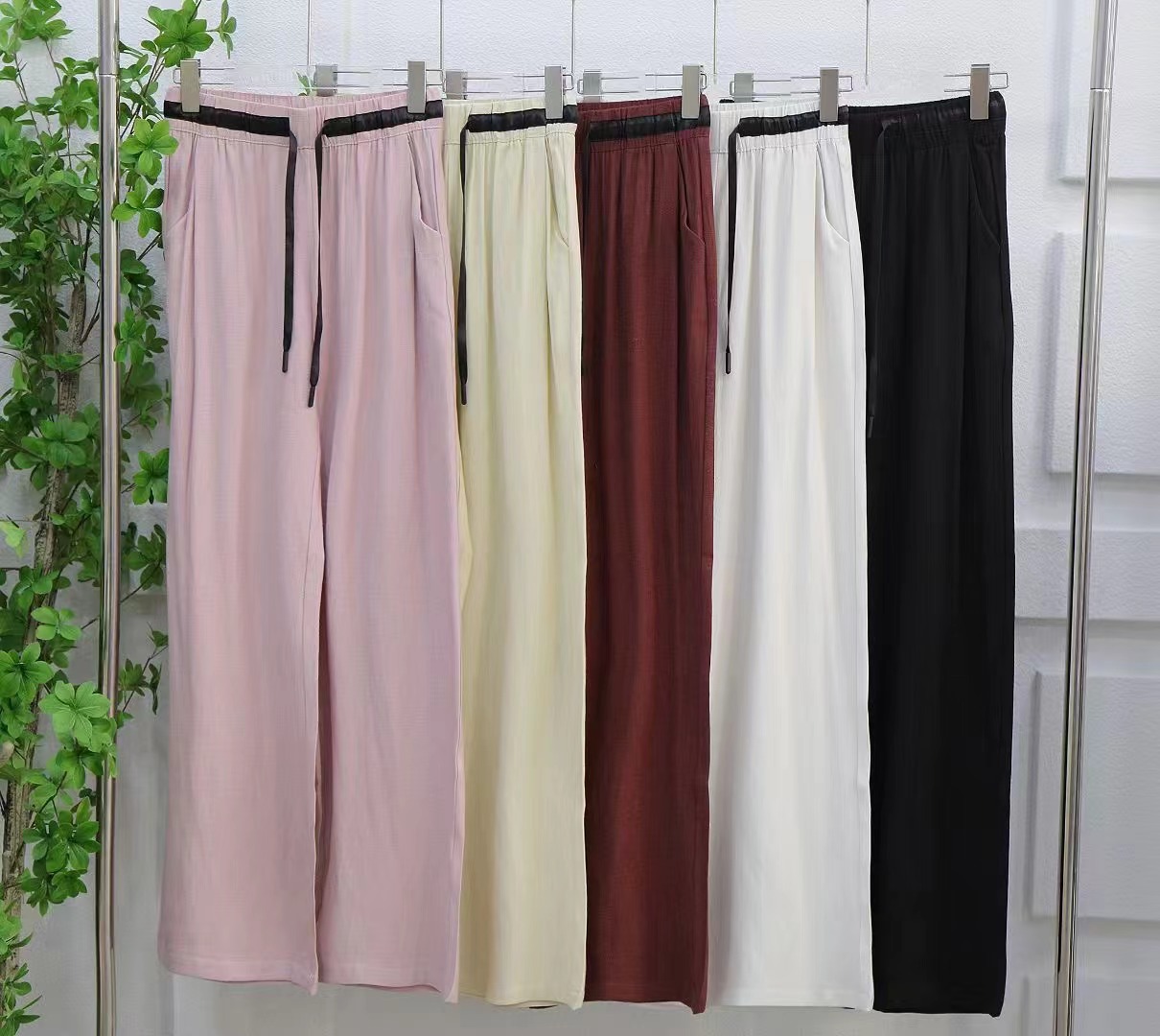 腰を緩めている天糸亜麻の狭い版のワイドパンツの女性の夏の薄いタイプの2025新型の垂れ下がった感じの氷糸の綿の麻のストレートのズボン