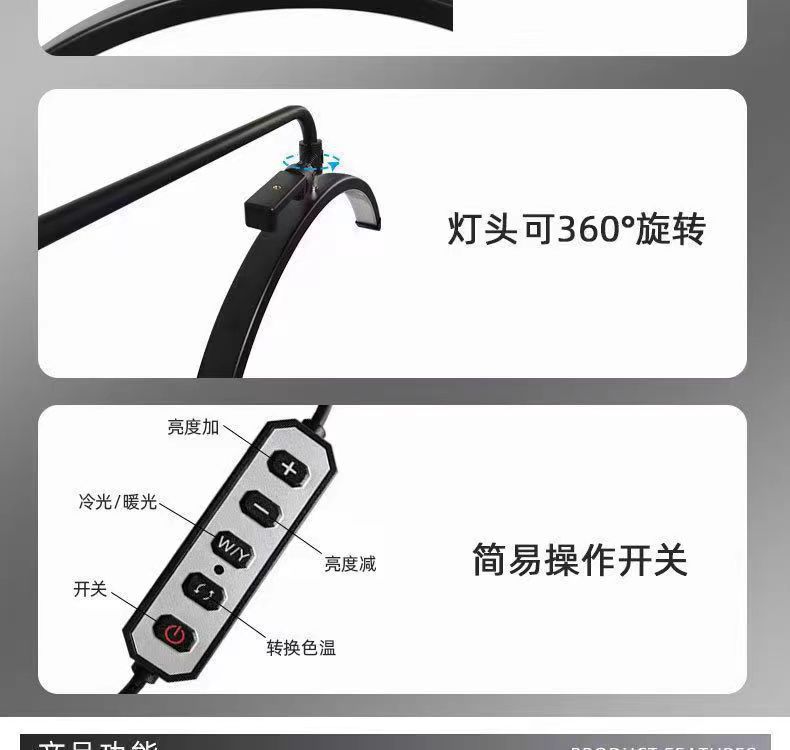 24寸美容美甲补光灯护眼美睫Moon light纹绣灯U型落地半月美容灯