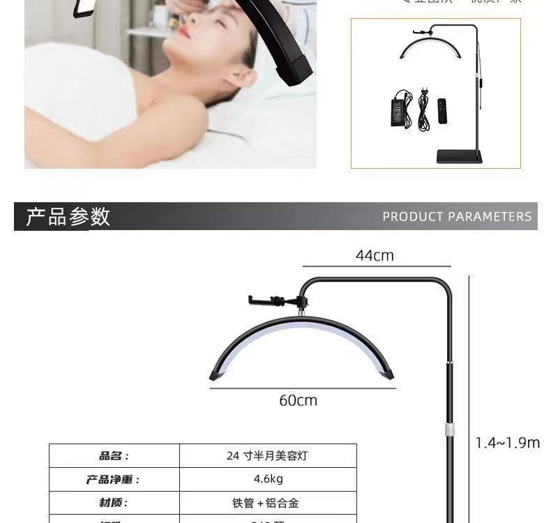 厂家直供24寸半月美容灯美容美甲美睫睫毛纹眉护眼led落地半月灯