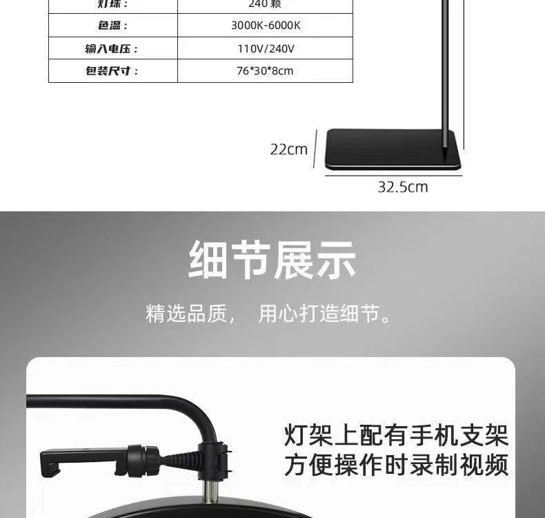24寸半月美容灯美甲纹眉嫁接睫毛专用美睫纹绣灯U型落地灯LED护眼