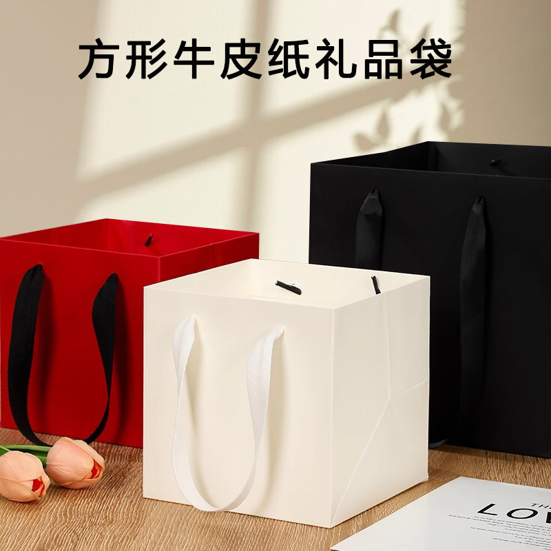 方形牛皮纸袋260克加厚节日鲜花袋纯色礼品袋购物手提袋现货