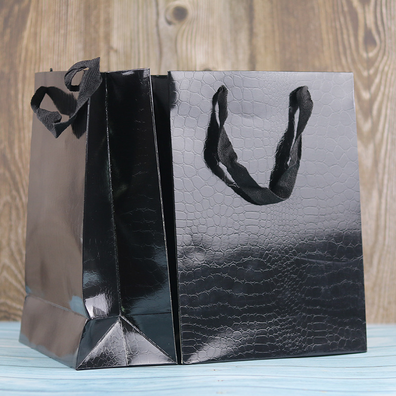 ギフトバッグ黒色ファッション高級ワニ紋トカゲ紋プレゼント手提げ紙袋服装店男性服手提げバッグ