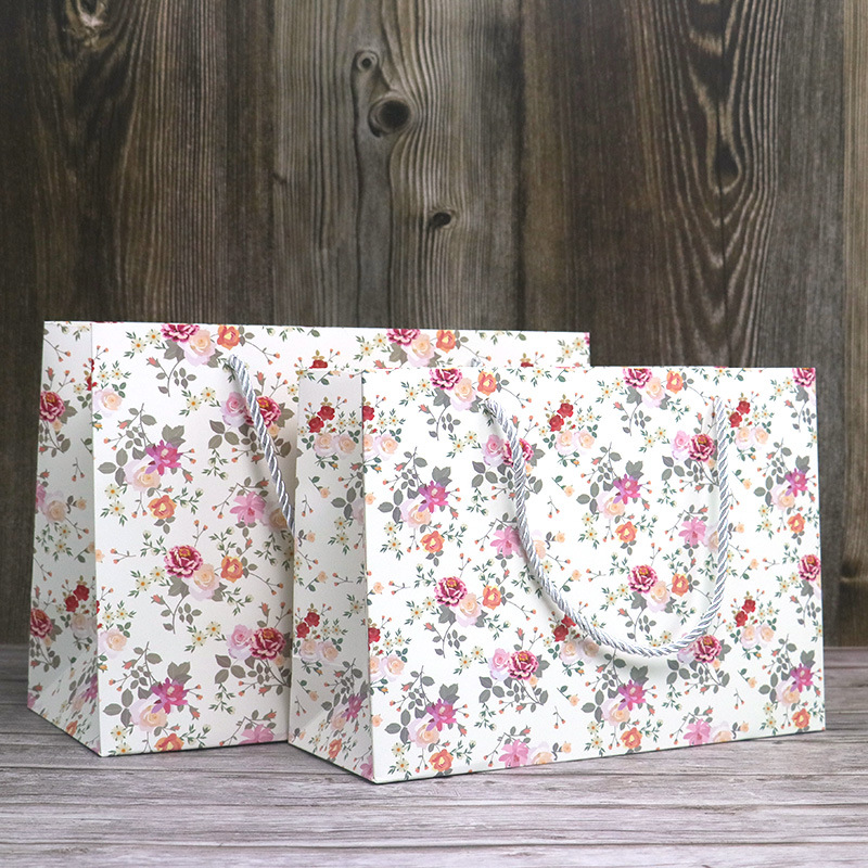 手提げ紙袋現物シンプルins風花柄お土産ショッピングバッグ印刷ロゴ小ギフトバッグ