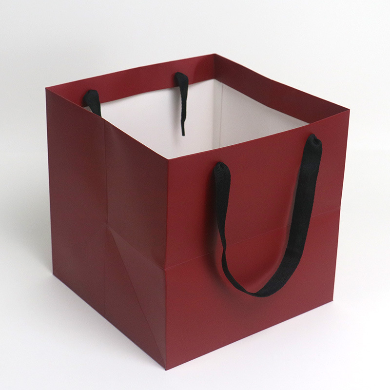 厚手の紙袋の大きいサイズの生花店の四角形の袋の服装の手提げ紙袋の現物の新年の贈り物の袋は印刷します。