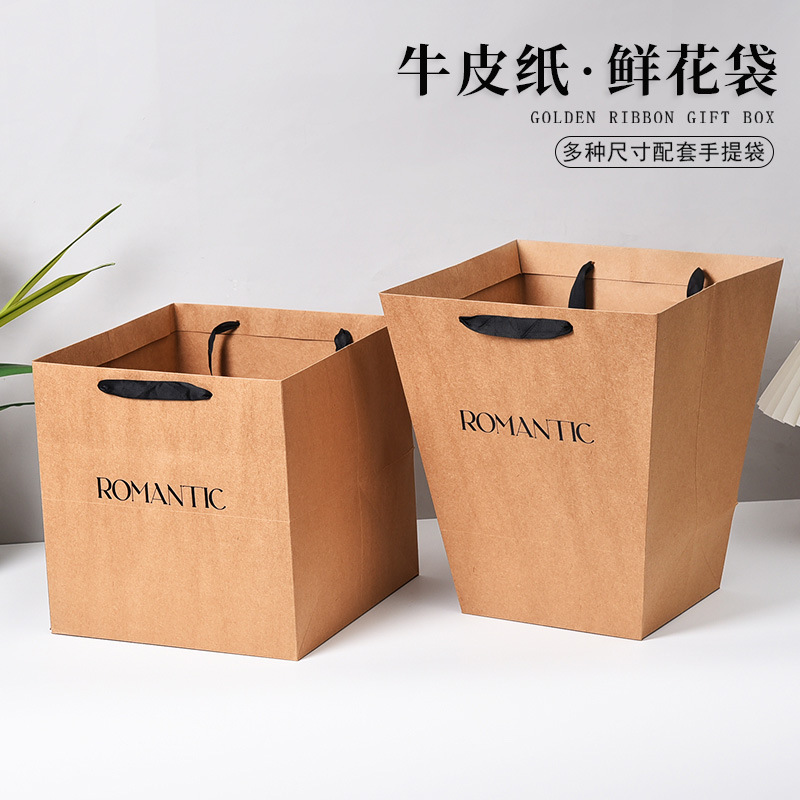 高级感梯形牛皮纸礼袋方形手提袋鲜花花束包装袋花店蛋糕店打包袋