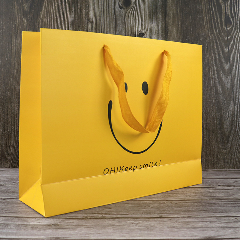 ポータブル紙袋子供服店衣類バッグギフト用かわいい誕生日スマイリーフェイスレモンイエロー小さなギフトバッグ