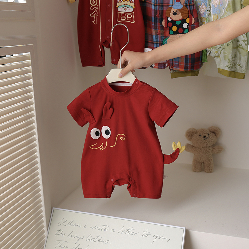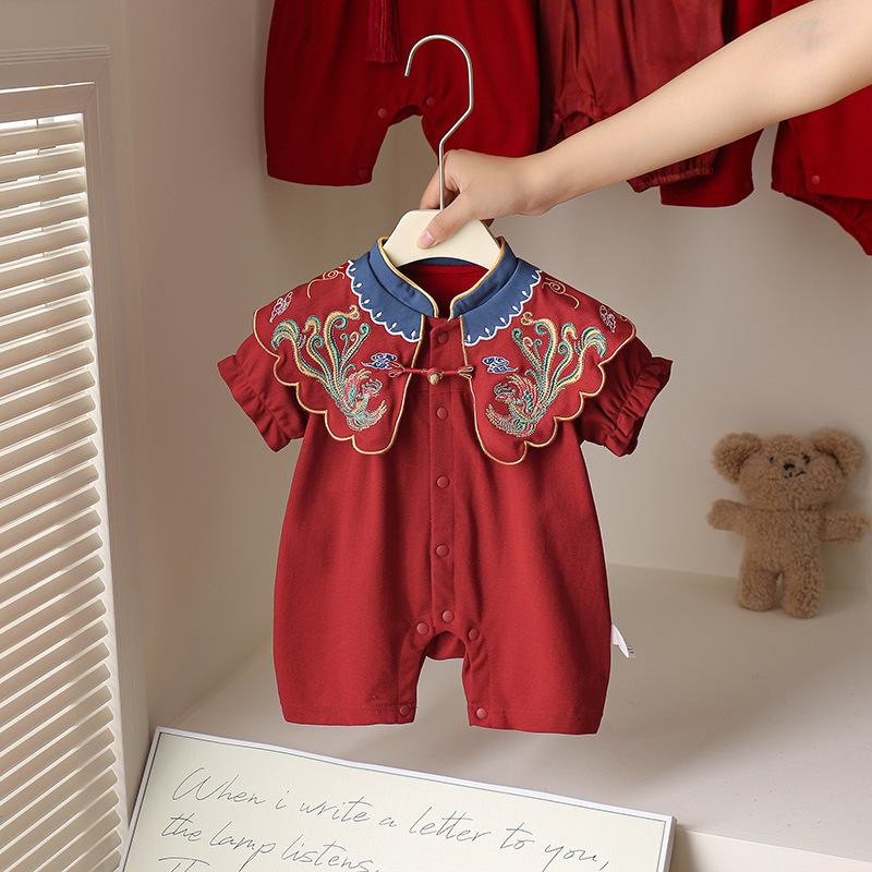 国風赤ちゃん夏服百日宴赤ちゃん赤いドレスはかわいい超萌え小龍連体服が周をつかむ