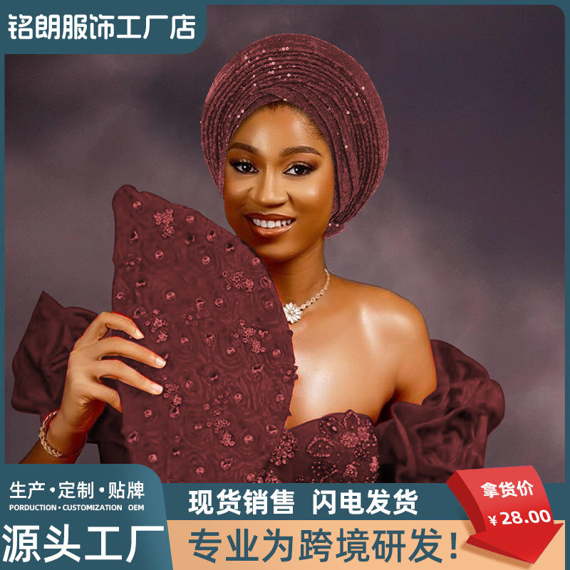 新型アフリカムスリム南米伝統ナイジェリア結婚式祝日重工業亮粉アイロン掛け包頭帽子女史