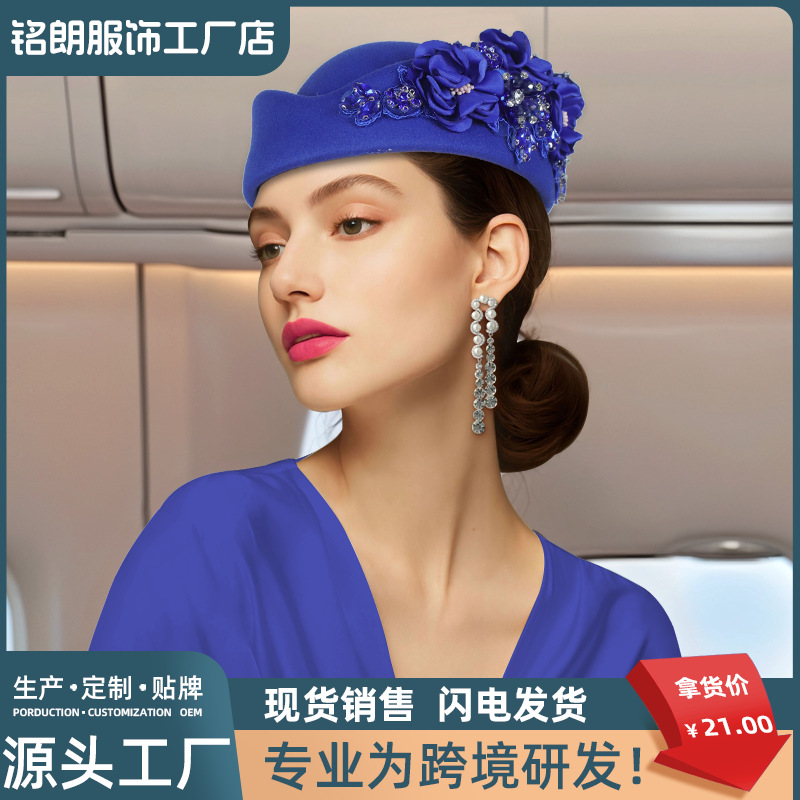 欧米のイギリスのレトロなファッションのスチュワーデスの女性のフェルトの毛は百合のベレーの帽子のラシャのスチュワーデスの帽子の礼儀の帽子