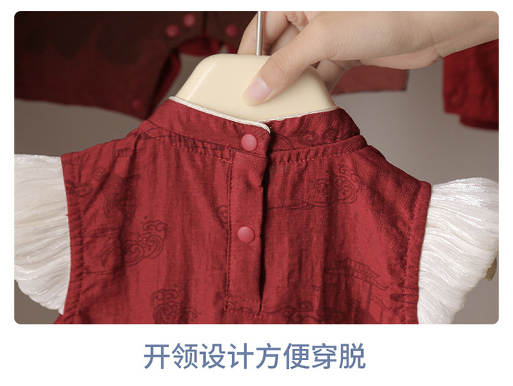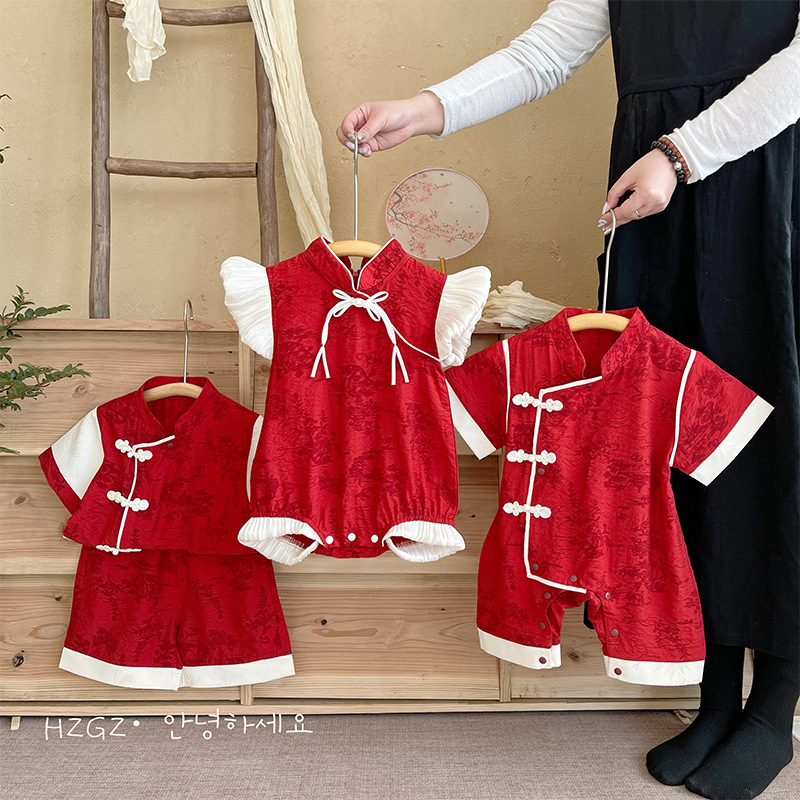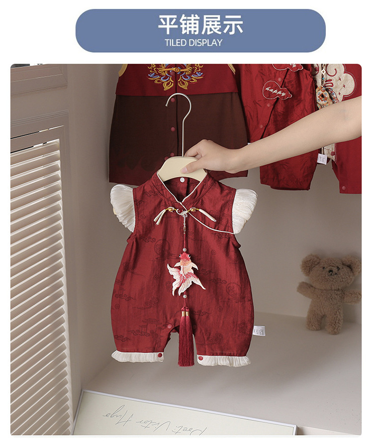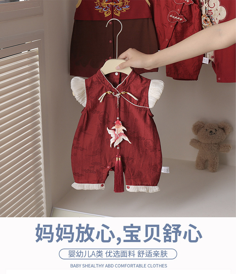 赤ちゃんの夏の薄いスーツの歳のドレスの赤ちゃんの洋気の復古の新しい中国式のお尻の服の連体の唐の服は服を登ります。