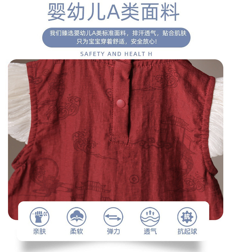 赤ちゃんの国風の夏のタイプのお尻の服の女性の赤ちゃんの夏の薄いタイプの半袖のワンピースの満月の満1歳の中国式は服を登ります
