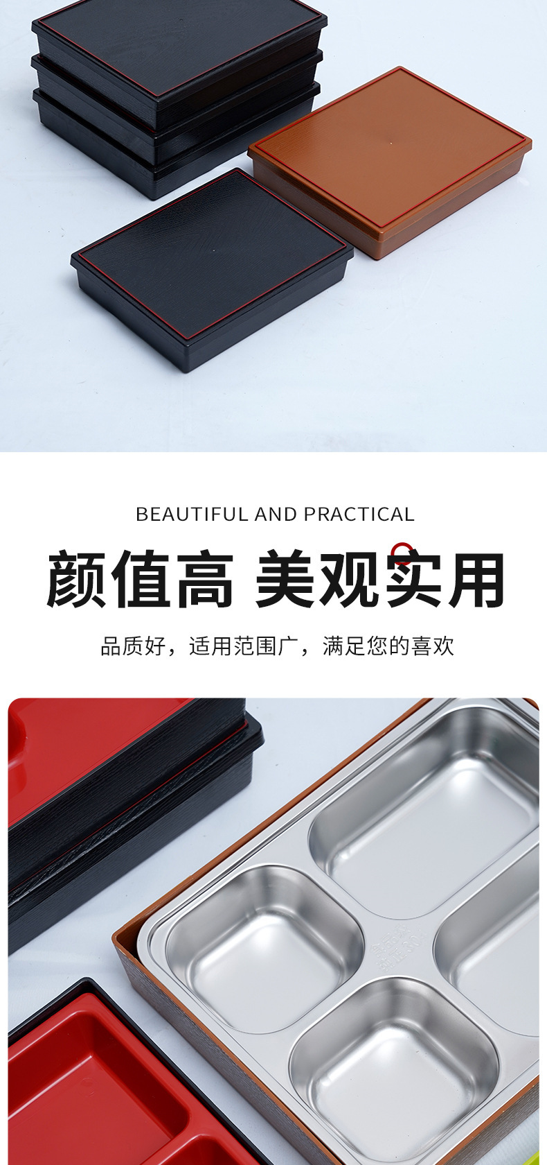 日本式木目弁当箱角型寿司箱ビジネスセット弁当箱多格蓋付き弁当箱高級感食器