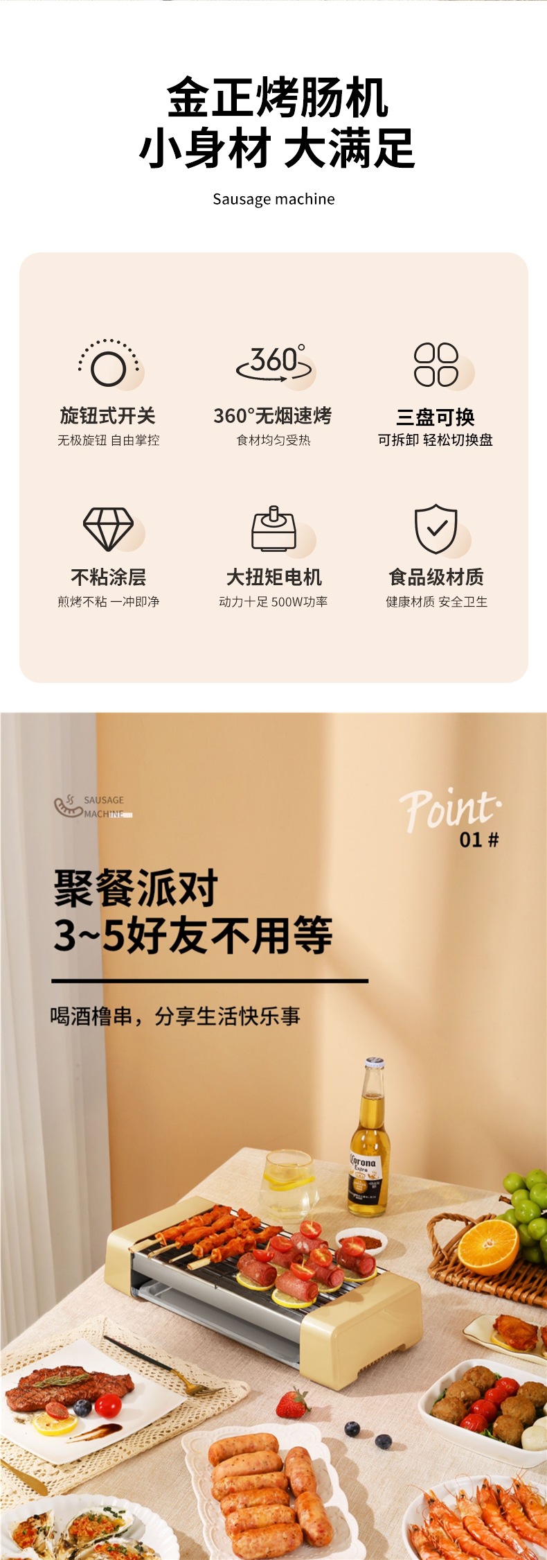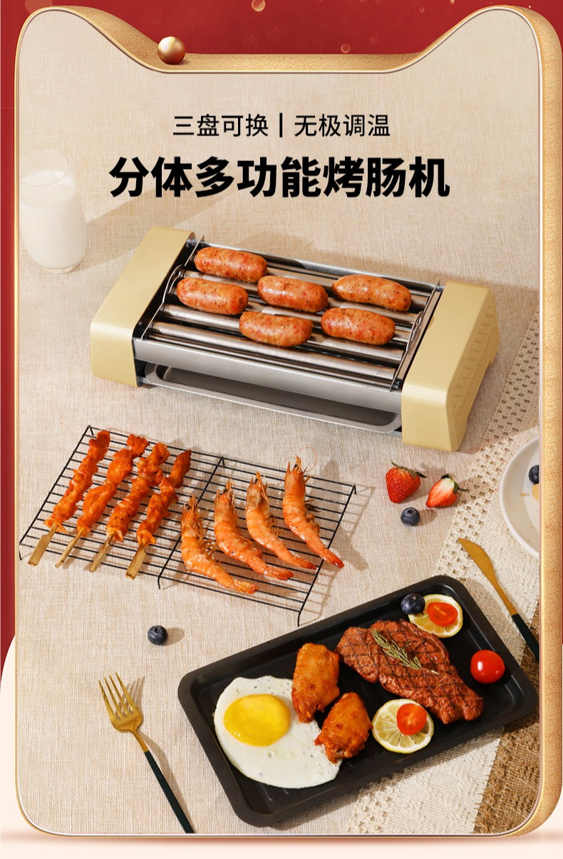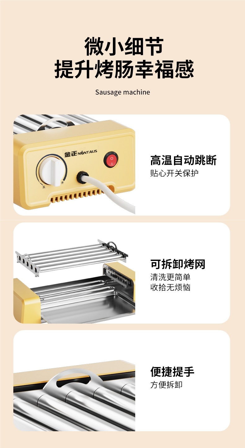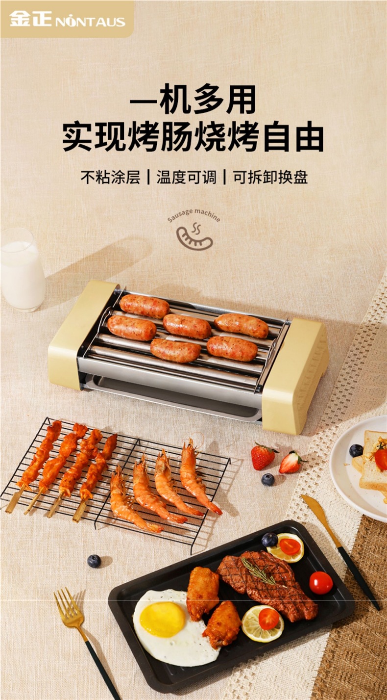 金正焼き腸機家庭用小型寮全自動ホットドッグ機多機能三合一電気焼き盤架ソーセージ