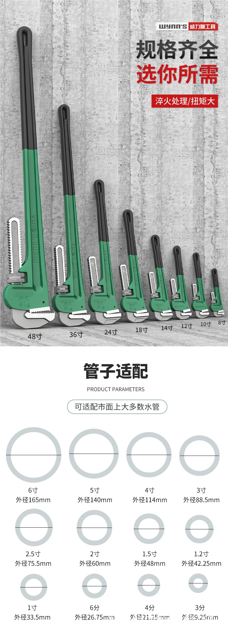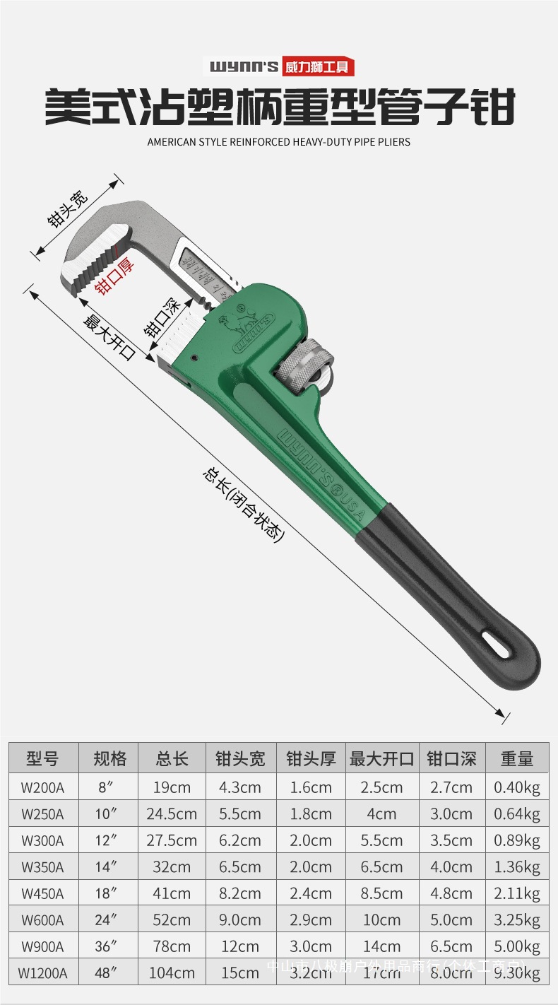 Weilishi アメリカのヘビーデューティ工業用グレードのパイププライヤー家庭用多機能水道管プライヤー水道管レンチ 8-48.8inch 極