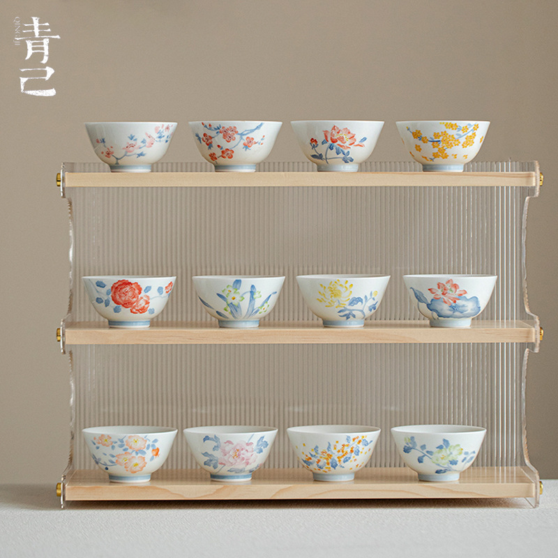 青己十二花神シリーズ手描き陶磁器カップ工夫茶器家庭用陶磁器主人杯品茗杯合集
