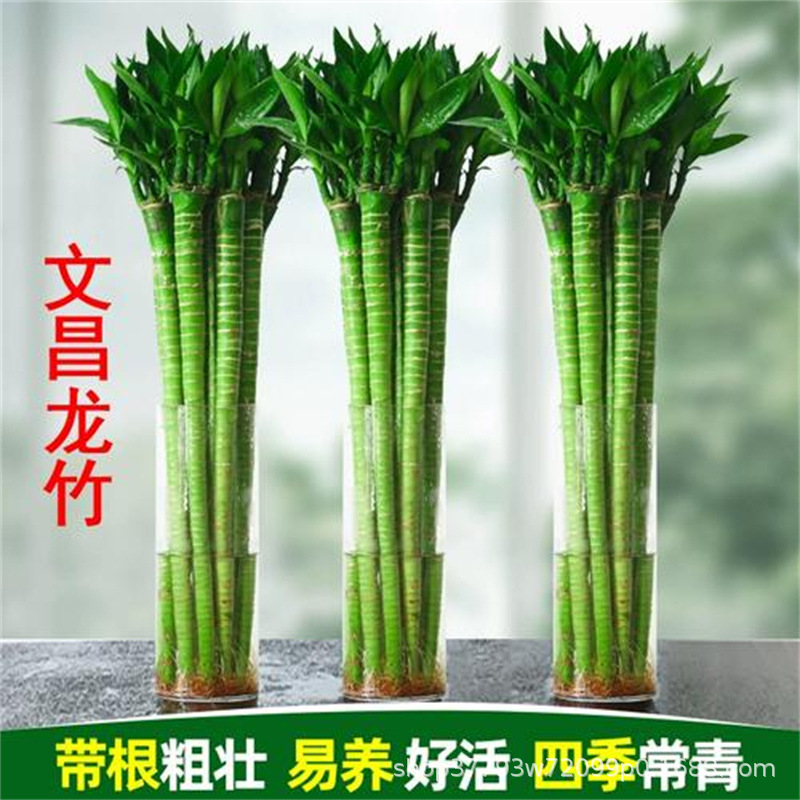文昌龍竹水耕植物富竹リビングルーム富を引き寄せる太い茎根付き水栽培竹屋内緑植物富竹