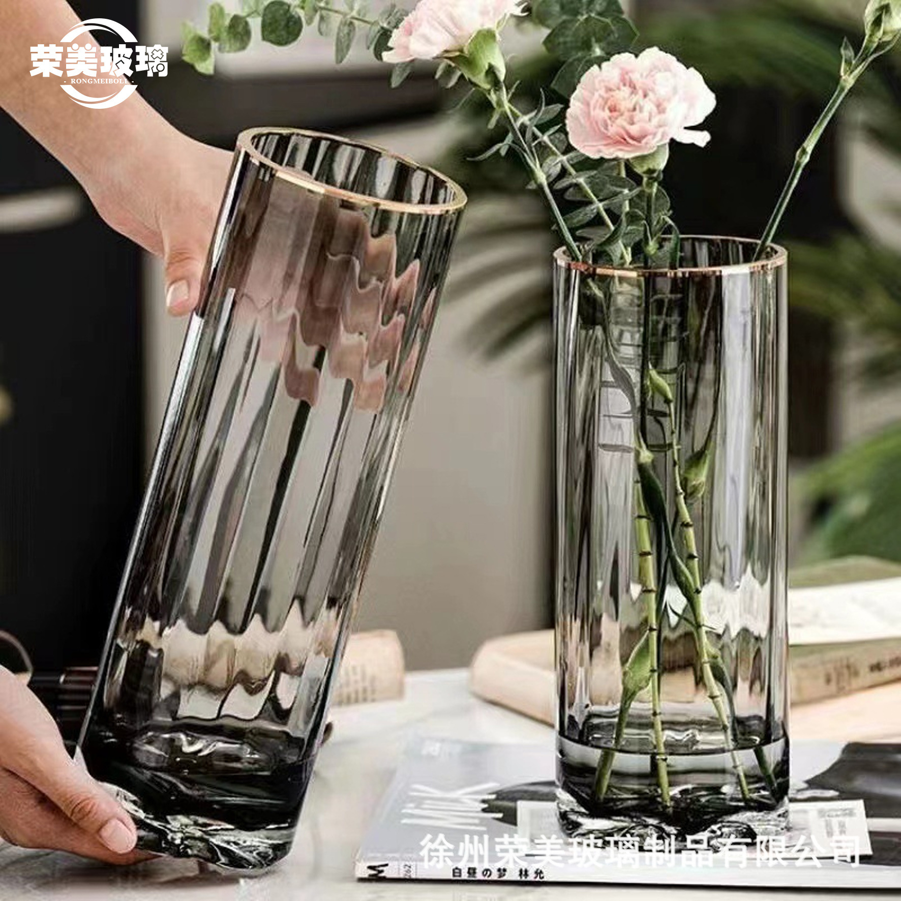北欧風透明ガラス花瓶軽豪華直筒花瓶シンプル水養富貴竹百合花花瓶置物