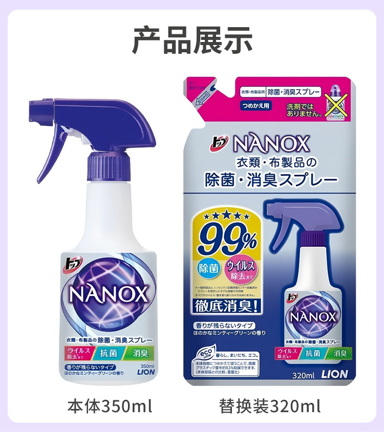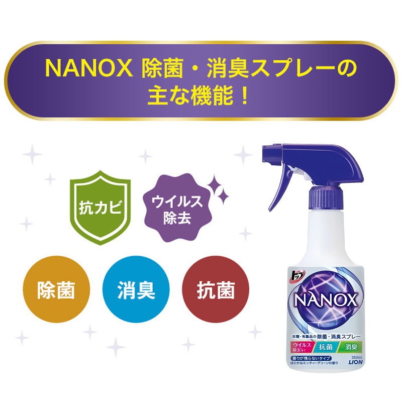 日本ライオンNANOX衣類用芳香スプレー、洗濯不要、除菌、消臭、煙の臭い除去、香り残り