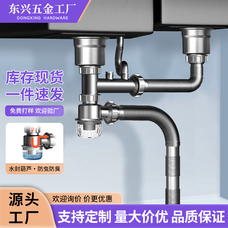 厨房洗菜盆下水管配件不锈钢双槽洗碗池水槽排水管防臭下水器套装