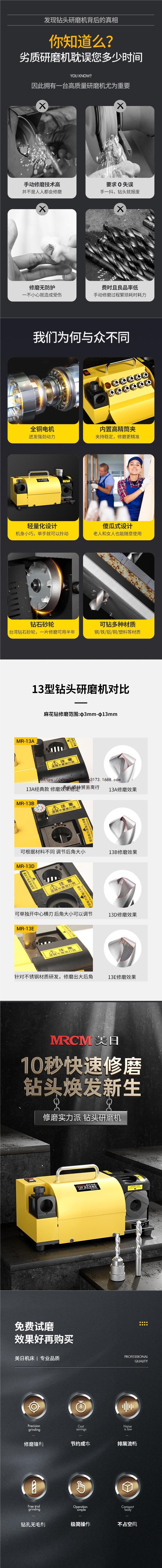 メイリエンタープライズストアはカスタマーサービスに相談し、正規メーカーから直接販売しています,MRCM Meiri 本物の工場直販には 13 ポイントの特別チケットが含まれます,Z1311はクロスエッジ(3~13mm)を開くことができます,Z1311 開口式ブレード強化バージョン (3-15mm),13A クラシックスタイル、スワッシュブレード開口部付き (3-13mm),13A オープンバック刃強化バージョン (3-15mm),13B 後隅のサイズを調整します (3-13mm),13B 後隅サイズ調整強化版(3~15mm),13D 多機能 (3 つの研削穴) より多くの位置決め (3-13mm),13D(3研削穴)位置決め強化版(3~15mm),MR-13L 3面合金ドリルビット水冷(3~14mm),MR-13K 深穴ドリルビット(3-15mm),MR-13E ステンレス、銅等(3~13mm),MR-13H 高精度(5本以内)(3~13mm),MR-13S 3面ドリルビットグラインダー(4-14mm),MR-20L 超硬ドリルビット 3面取り(4-20mm),MR-20G 広範囲リアアングル調整モデル(3~20mm),MR-Z20 輸出型広範囲(3~20mm),MR-26A 安定した効果を備えた大型ドリルビットのクラシックモデル (13-26mm),MR-26A 大型ドリルビット効果安定強化モデル(8~32mm),MR-26D 多機能セパレートブレード(13~26mm),MR-26Dは別途多機能ブレード(13~26mm)を装備,MR-G3はセパレートな刃先範囲(3~26mm)を実現,G3 は別途リベット (3 ~ 32mm) を使用してリベットを強化できます。,MR-13C 面取り皿穴(3~13mm),MR-13Q 薄板ドリル 溶接ドリル(4~14mm),MR-13T ステップドリルグラインダー (4-14MM),MR-13F 粉末冶金ドリル (4-14MM),MR-6A 小型高精度ドリルビット研削盤 (0.8-6MM),MR-60B 大型ドリルビットグラインダー(10~60mm),MR-80B 大型ドリルビットグラインダー(10~80mm),MR-ZQ5 ガンボール盤(5~22mm),MR-13A/D 砥石 5本セット、13ポイント特別チケット無料,MR-13B/20G 砥石 5本セット、13ポイント特別チケット無料,MR-13L/20L砥石5枚、13ポイント無料チケット,MR-26タイプ砥石5枚セット、13ポイント特別チケット無料,MR-1311 ドリルビットグラインダーモデル(3~13mm),コレットなしの Z1311 モデルには 13 ポイントの特別チケットが付属します,MR-1311 ドリルビットグラインダー強化版 (3-15MM)