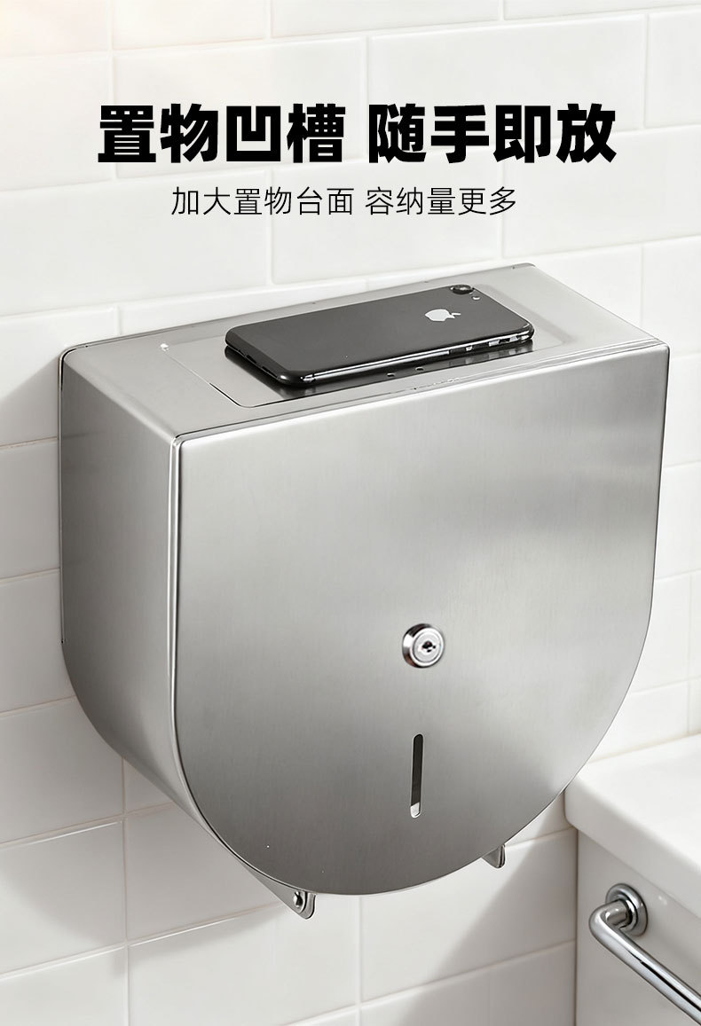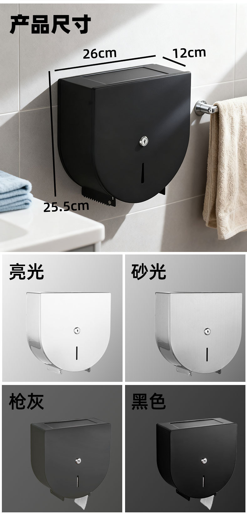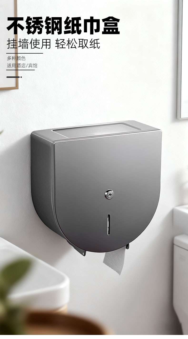 ステンレス304大皿ロール紙箱ホテルトイレ壁掛け式手紙箱トイレ防水ティッシュ箱