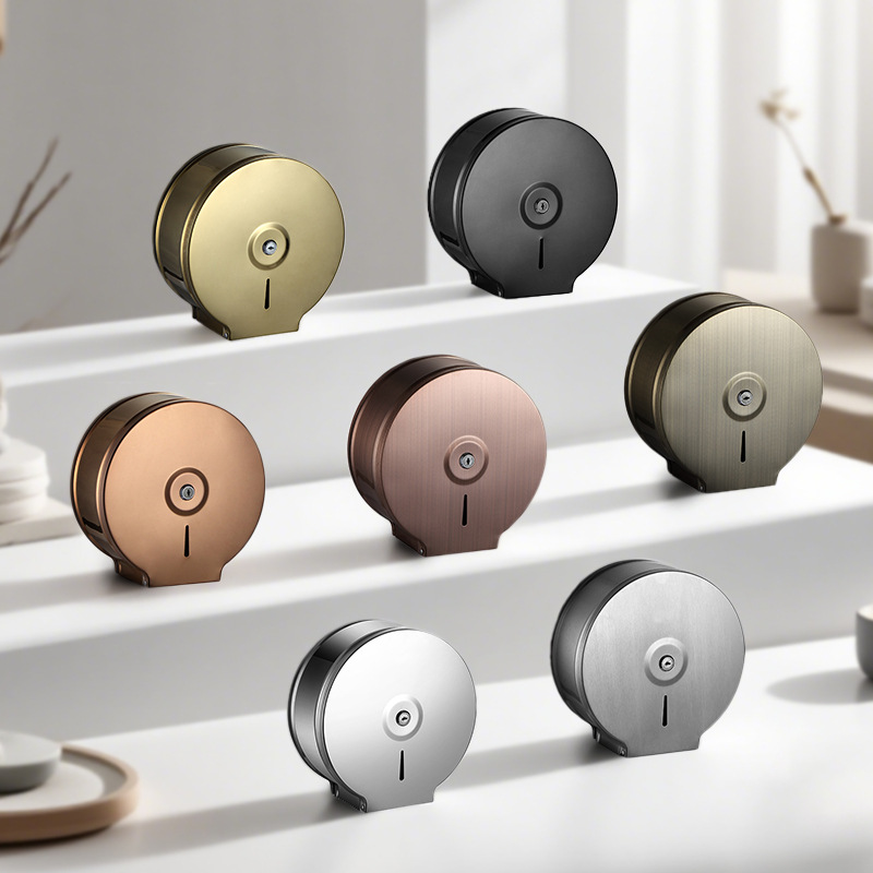 304ステンレス鋼製丸型ペーパーホルダー、ホテルのバスルーム用多目的、穴あけ不要の壁掛け両用大型ペーパータオルホルダー