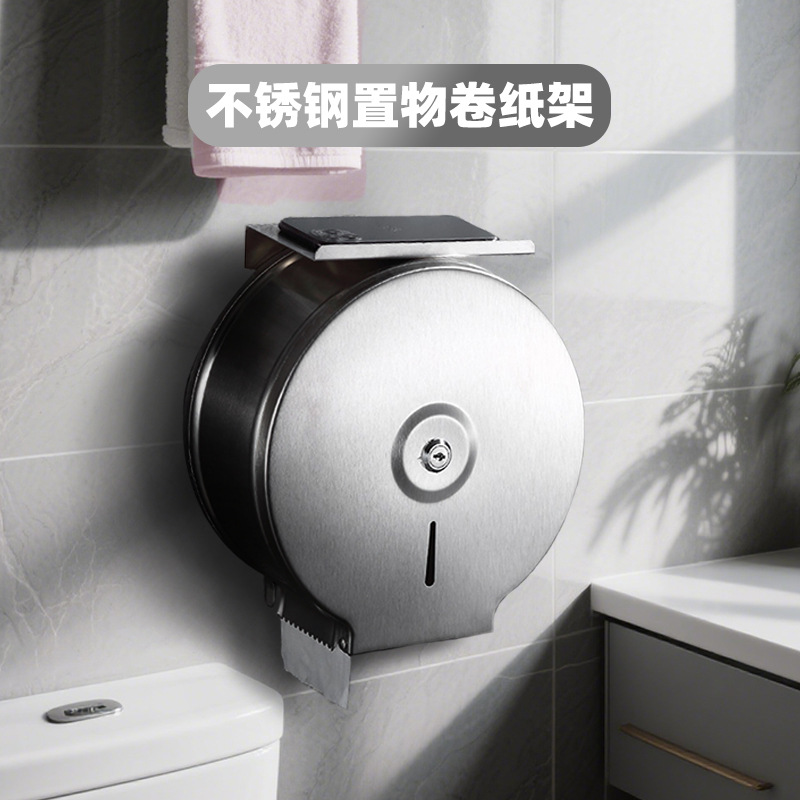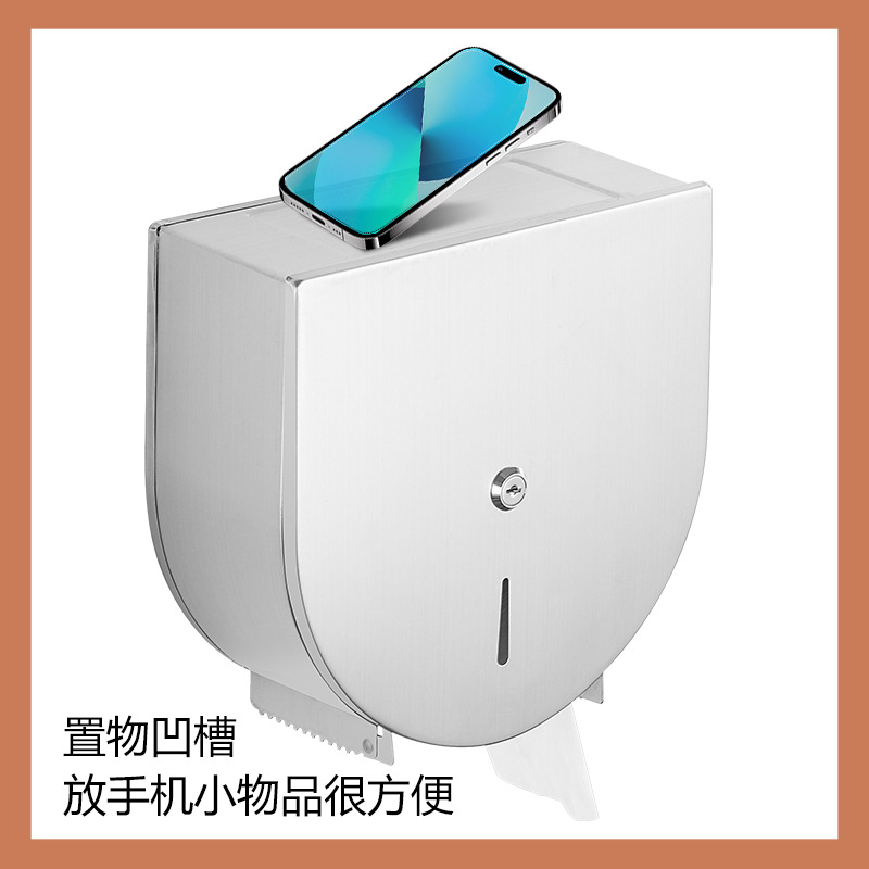 304ステンレス防水帯携帯電話ホルダー大皿巻き紙箱ホテル家庭用トイレ穴なし紙ホルダー卸売り