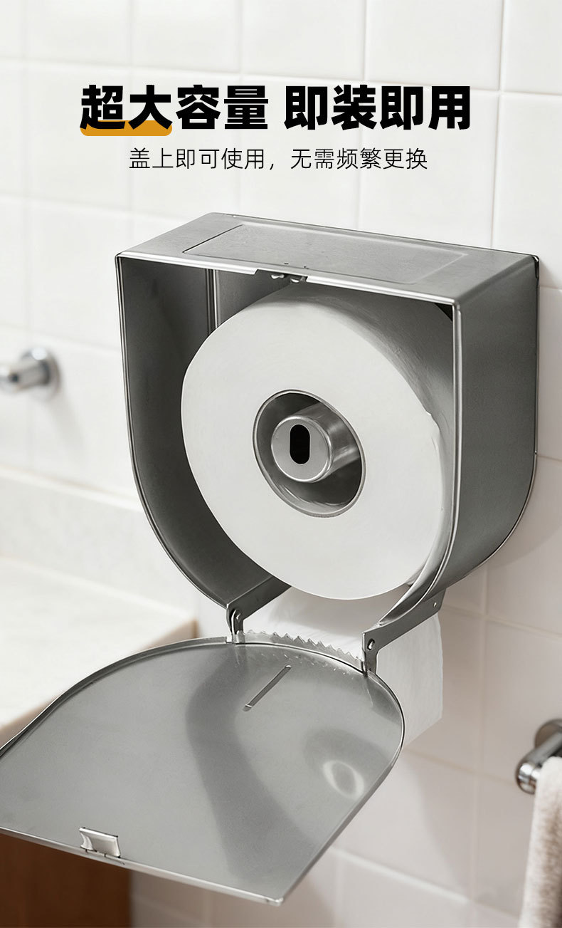 トイレティッシュボックス大巻き紙箱穴なし壁掛け式ステンレスティッシュホルダー大皿紙箱トイレットペーパー箱