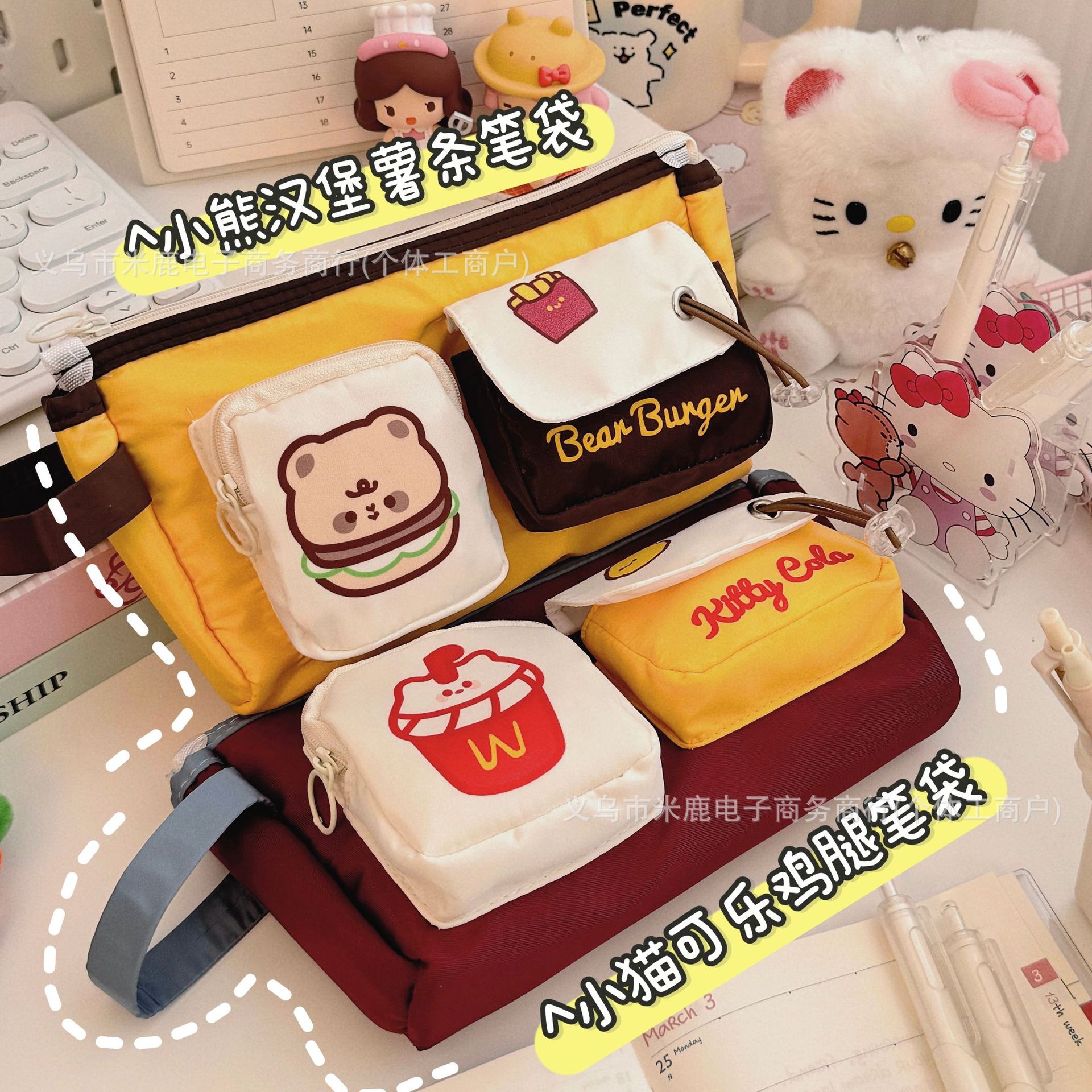 アメリカンレトロベアバーガー鉛筆バッグインニッチ超大容量文具バッグ学生かわいい筆箱収納