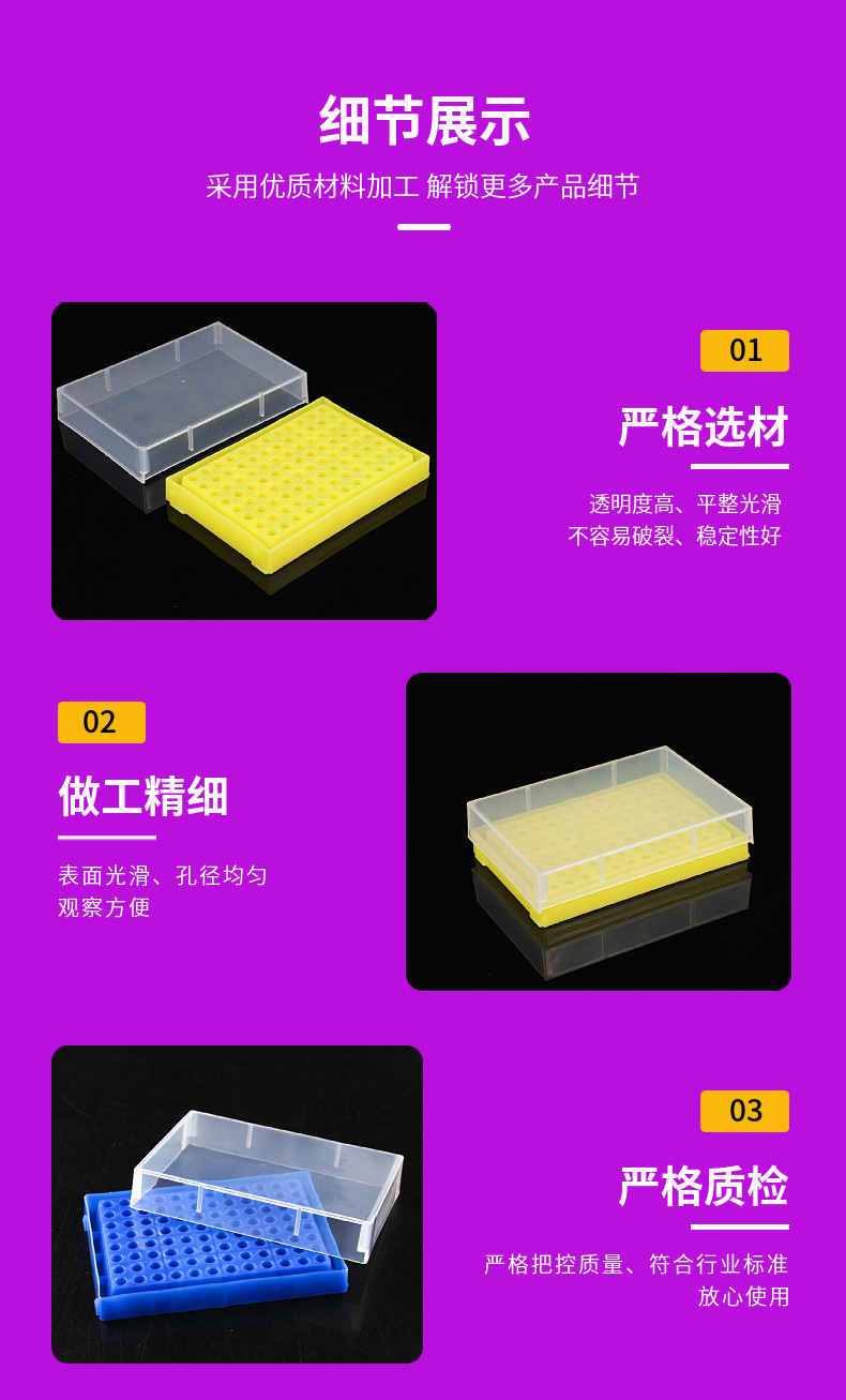 0.2ml离心管盒96孔pcr管八连管盒连盖可携带盒塑料实验室ep管盒