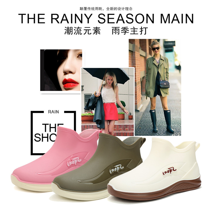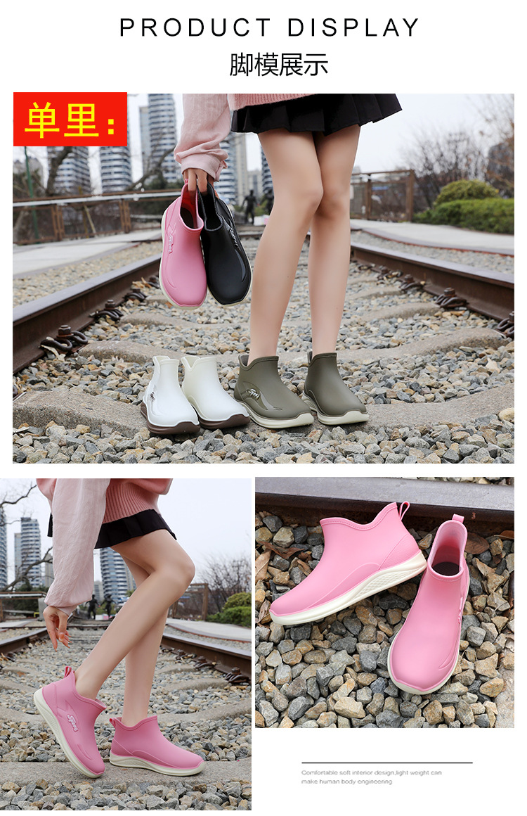 雨靴レディース新型ソフト底防水耐磨耗靴滑り止め作業キッチン軽いゴム靴厚い底ショートブーツ