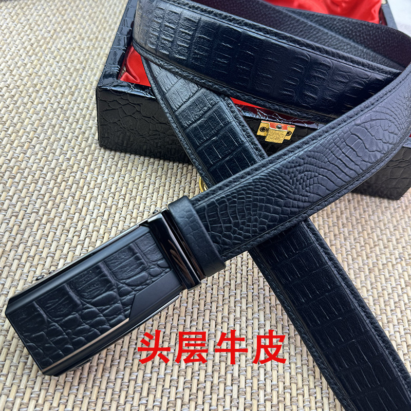 皮带男士头层皮合金贴皮自动扣牛皮腰带百搭休闲简约裤带现货批发