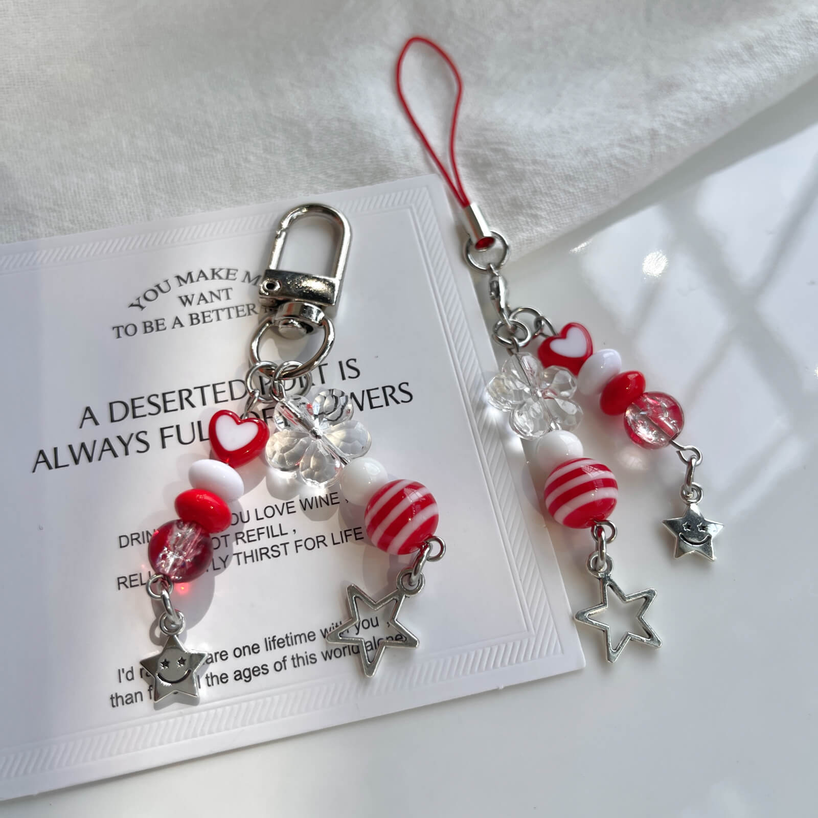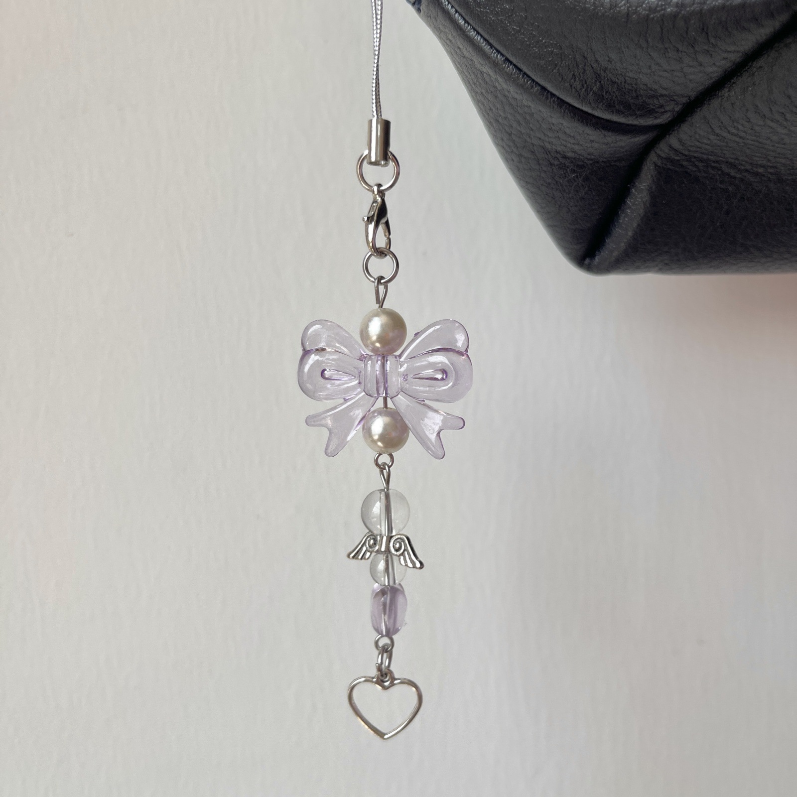 粉色爱心串珠手机链ins风蝴蝶结翻包挂件相机CCD包包链挂坠小饰品