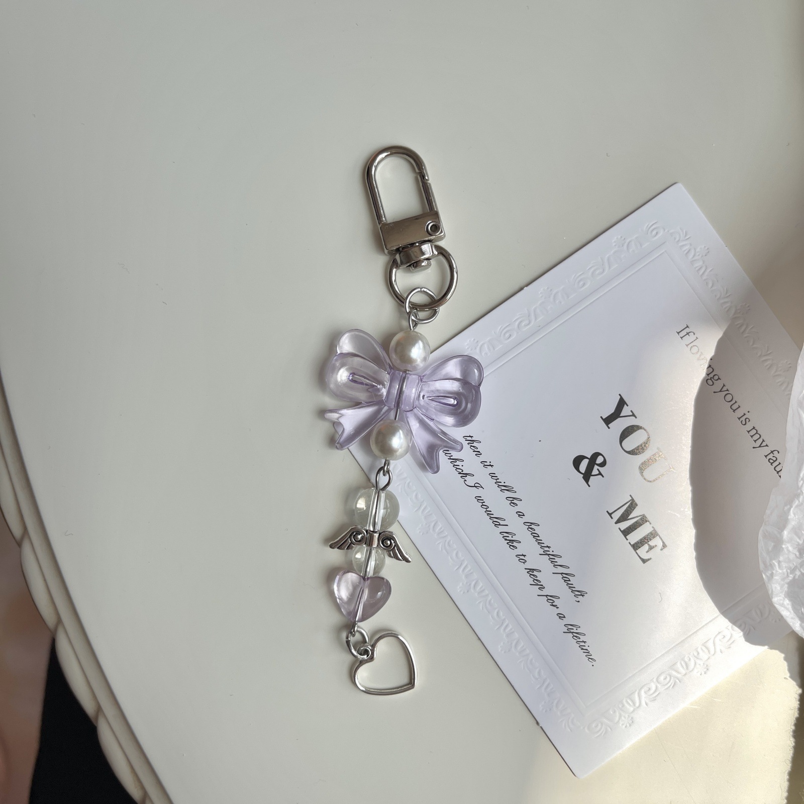 手作りのシンプルなビーズインラブペンダントパープルリボンペンダントスクールバッグガブンペンダントキーホルダー