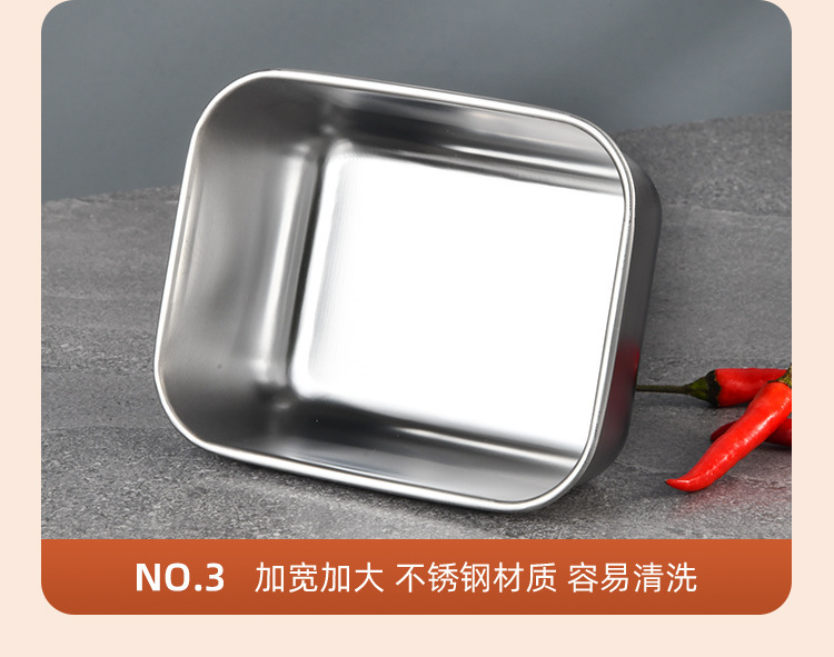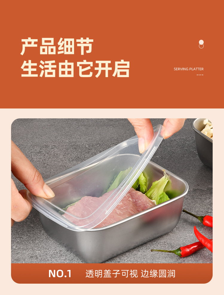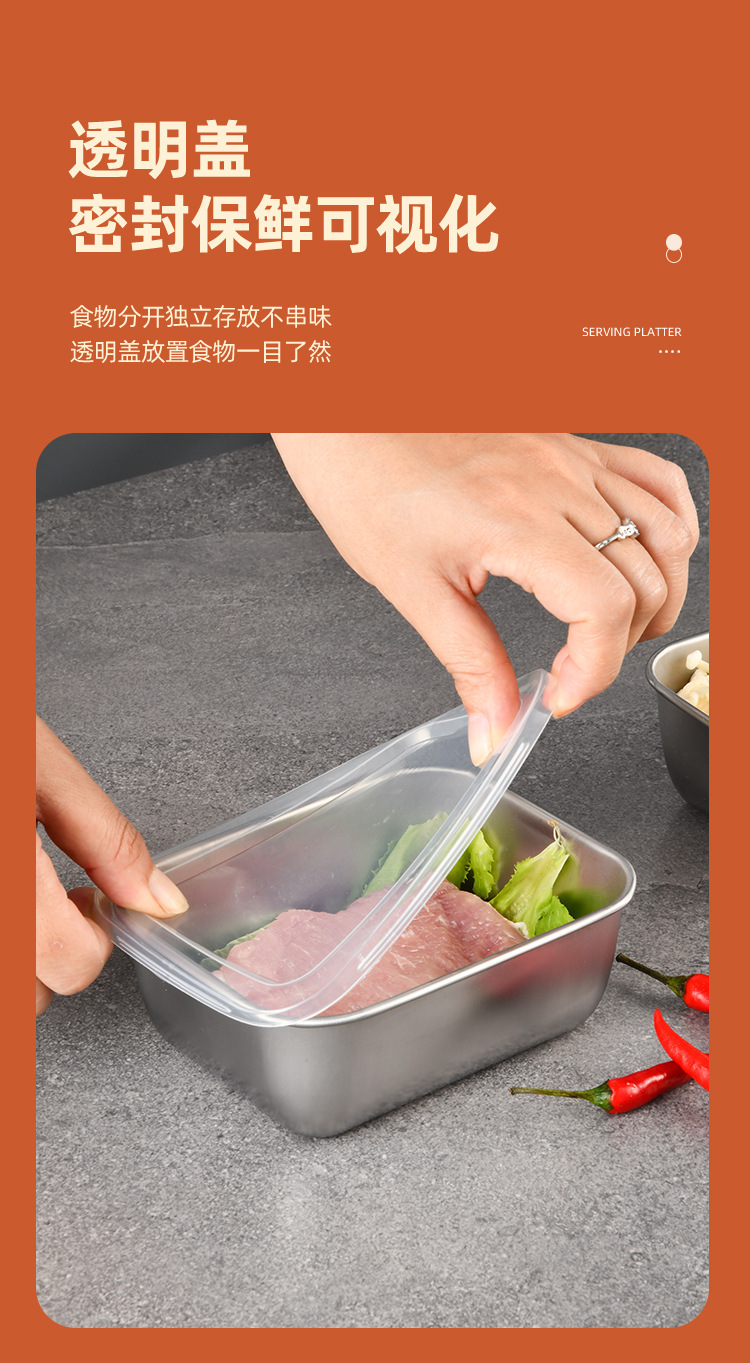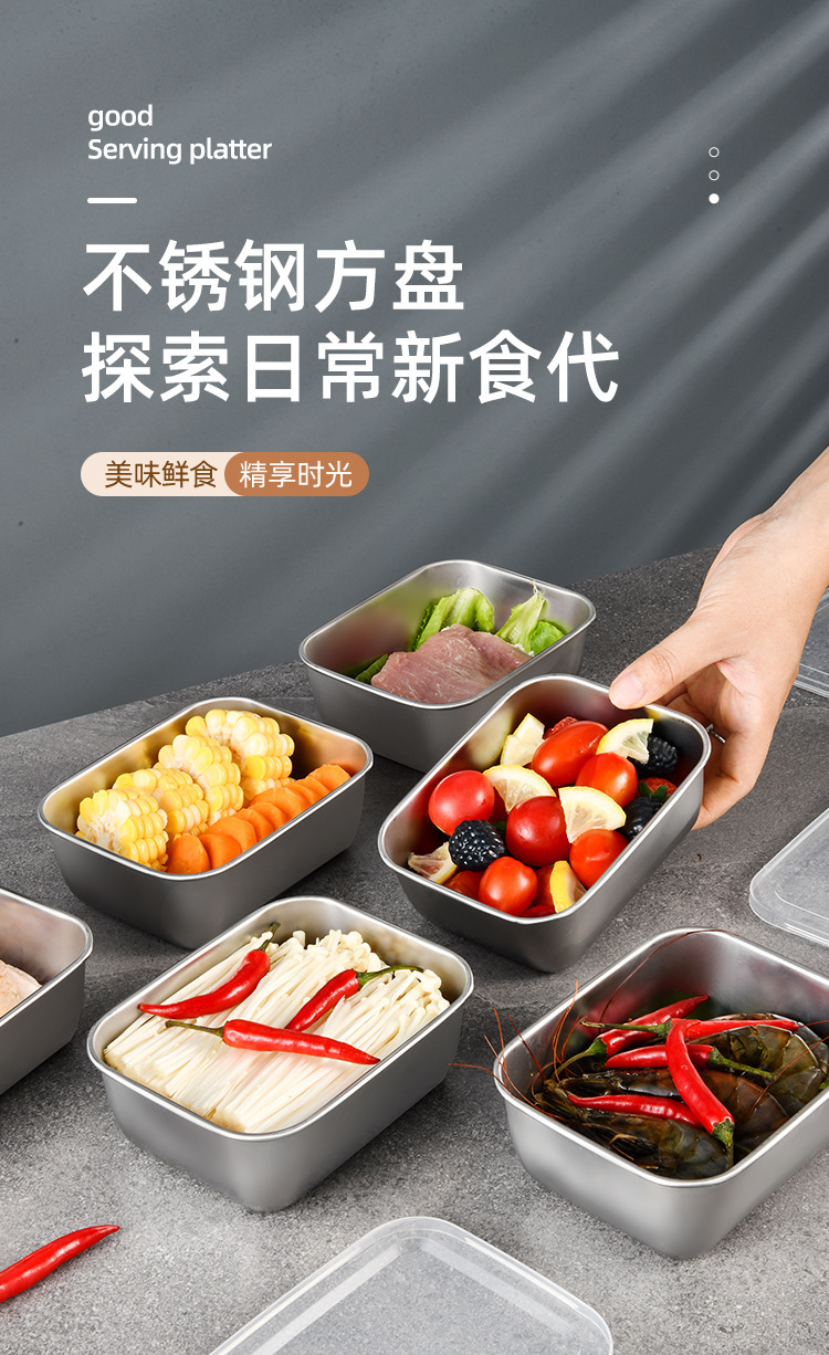 201不锈钢保鲜盒方盘冰箱收纳盒带盖子烧烤凉菜盘果盘蒸鱼烤鱼盘