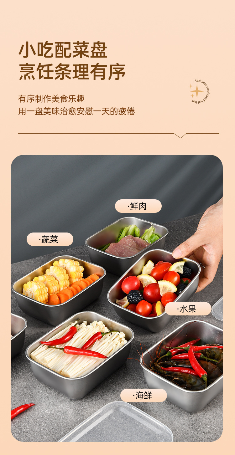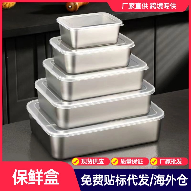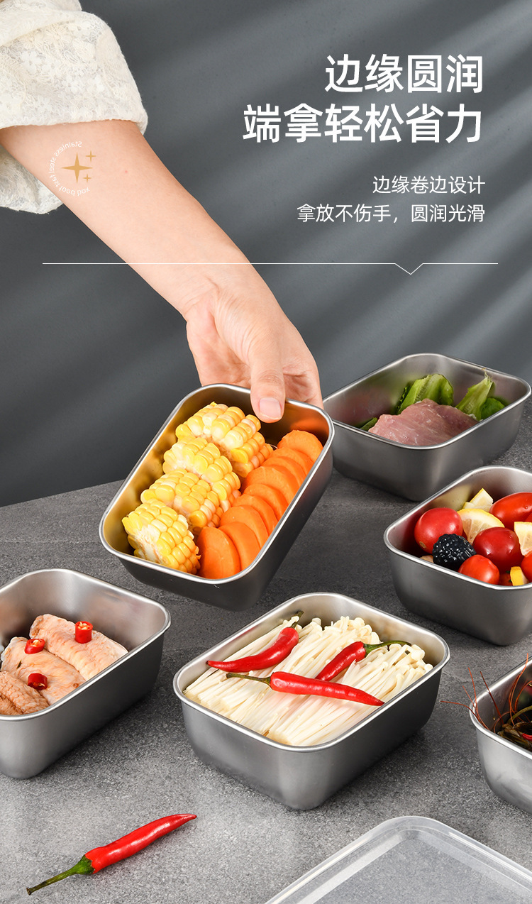 食品级不锈钢保鲜盒带盖密封盒冷冻保鲜盒冰箱收纳盒备菜盒毛巾盘