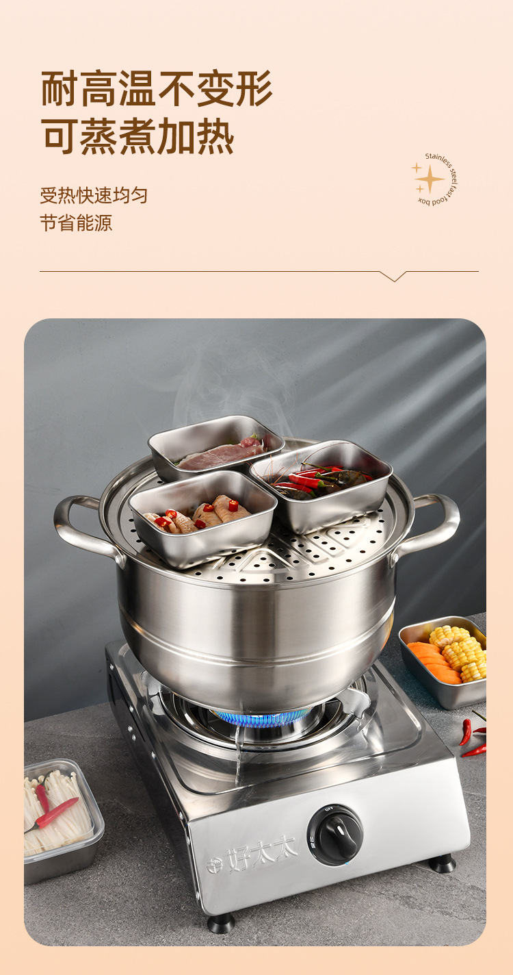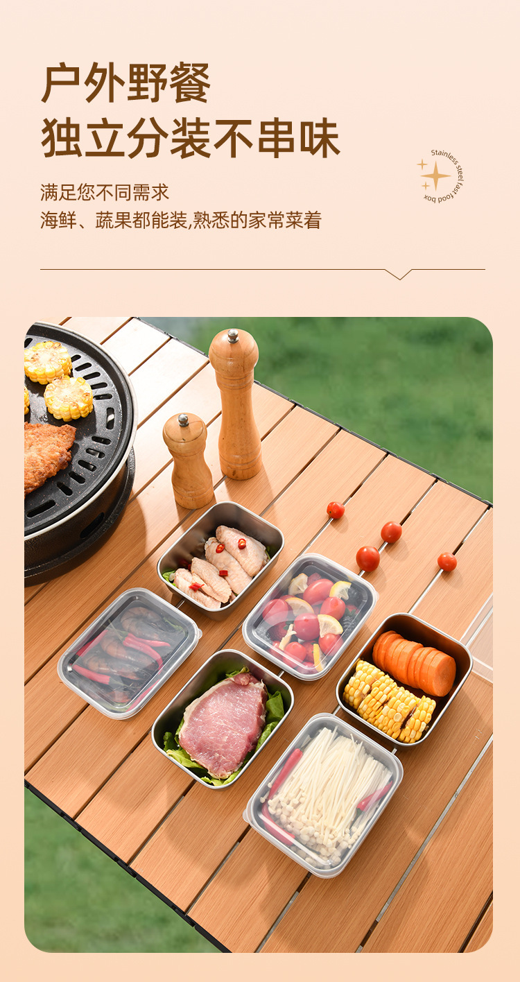 304不锈钢野餐盒食品级带盖密封方形保鲜盒家用分装盒冰箱收纳盒
