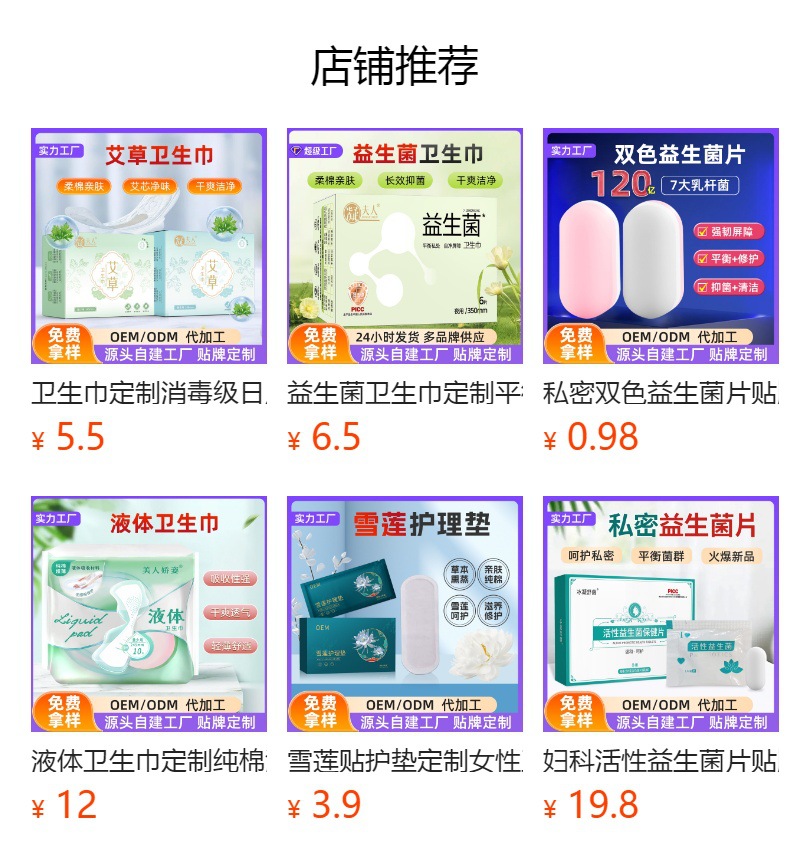 製品属性2 プロバイオティクス生理用ナプキン OEM