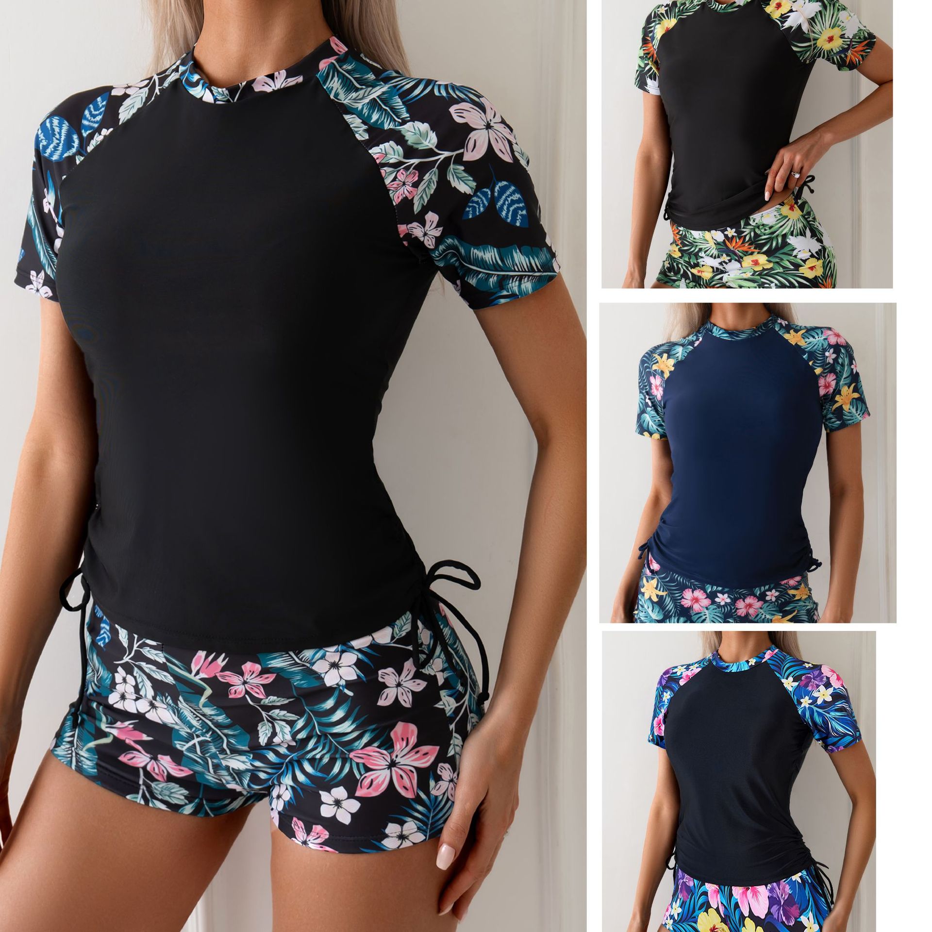 ヨーロッパとアメリカの水着クロスボーダースプリット水着プリント半袖ボクサーパンツ水着アマゾンスポーツ水着女性 2025