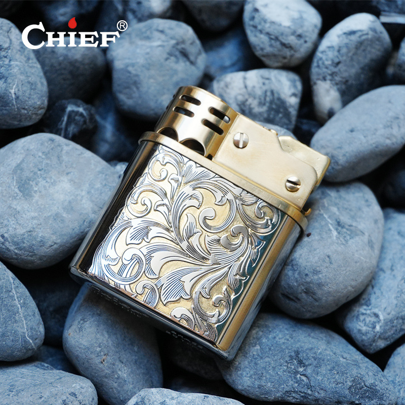 CHIEF首領二世代機高級ロール模様古銀灯油ライター小型誕生日プレゼント彼氏