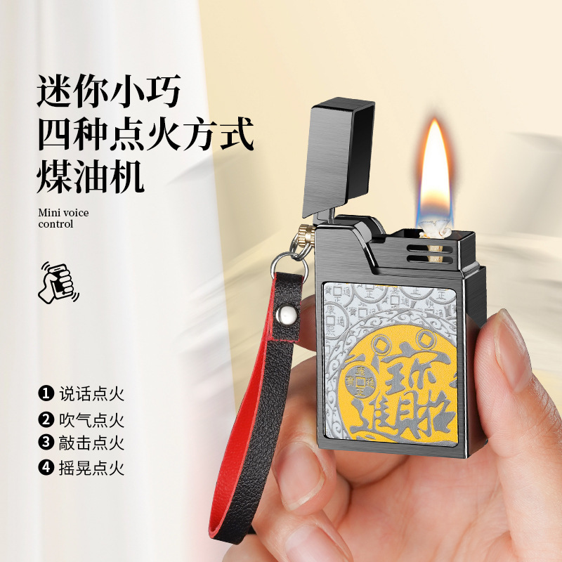 新款曼陀罗小方砖声控电弧煤油打火机复古高档黑科技