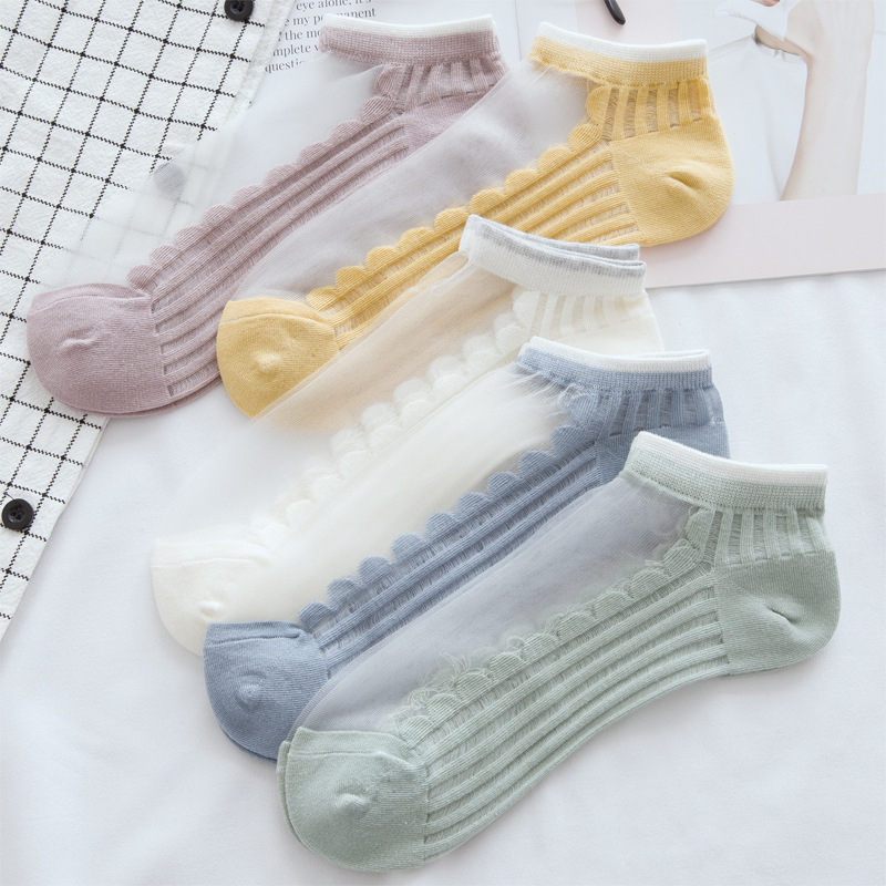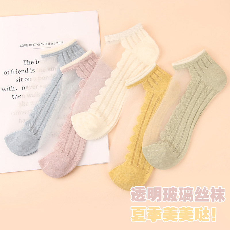 ショートソックスの靴下の女性の夏のストッキングの韓国版のガラスのストッキングのかわいい女性の靴下の水晶のストッキングの浅い口の薄い靴下の女性