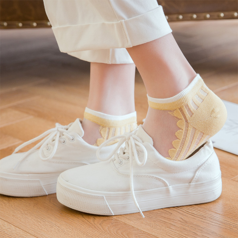夏用レディースソックス、多用途薄手ガラスシルクソックス、デイジー柄クリスタル浅口カシミヤソックス、レディースショートソックス、特価