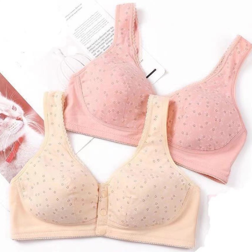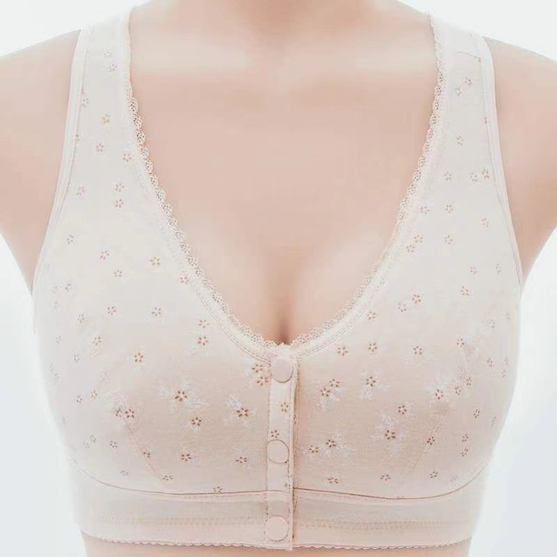 新しい中高年女性のフロントボタン付き大きいサイズノンワイヤー下着ベストスタイル薄型ブラジャー女性の快適で通気性のあるブラジャー